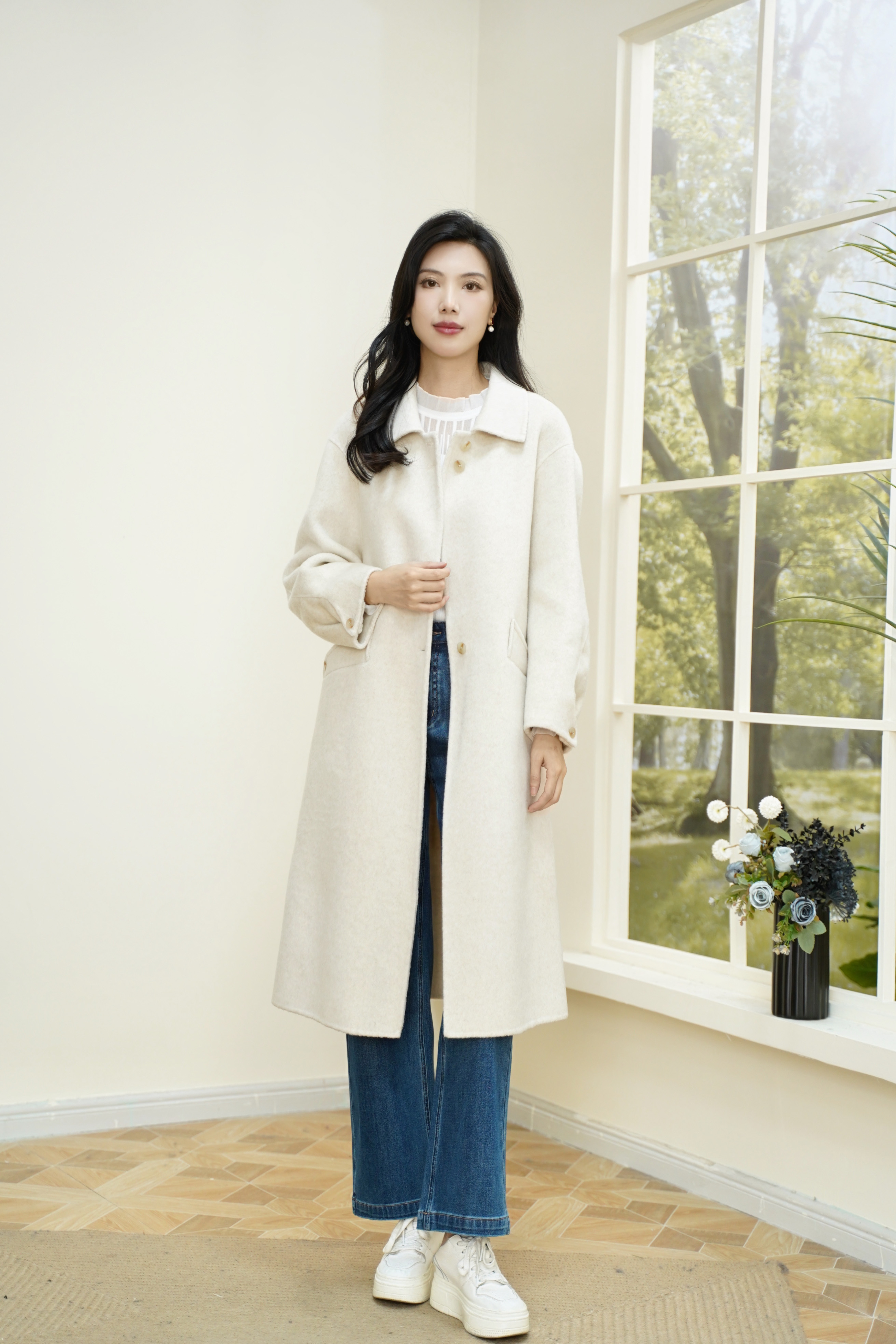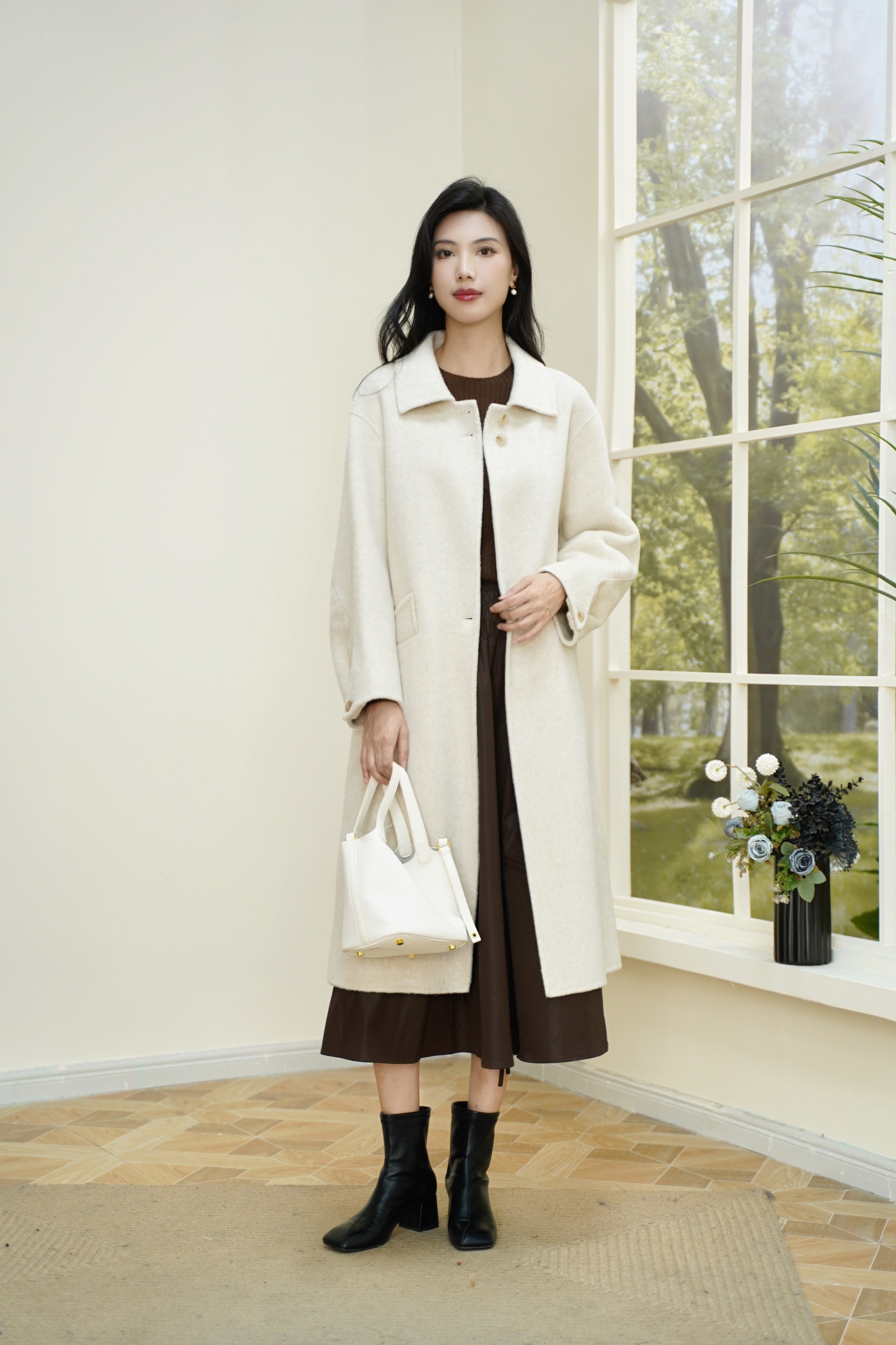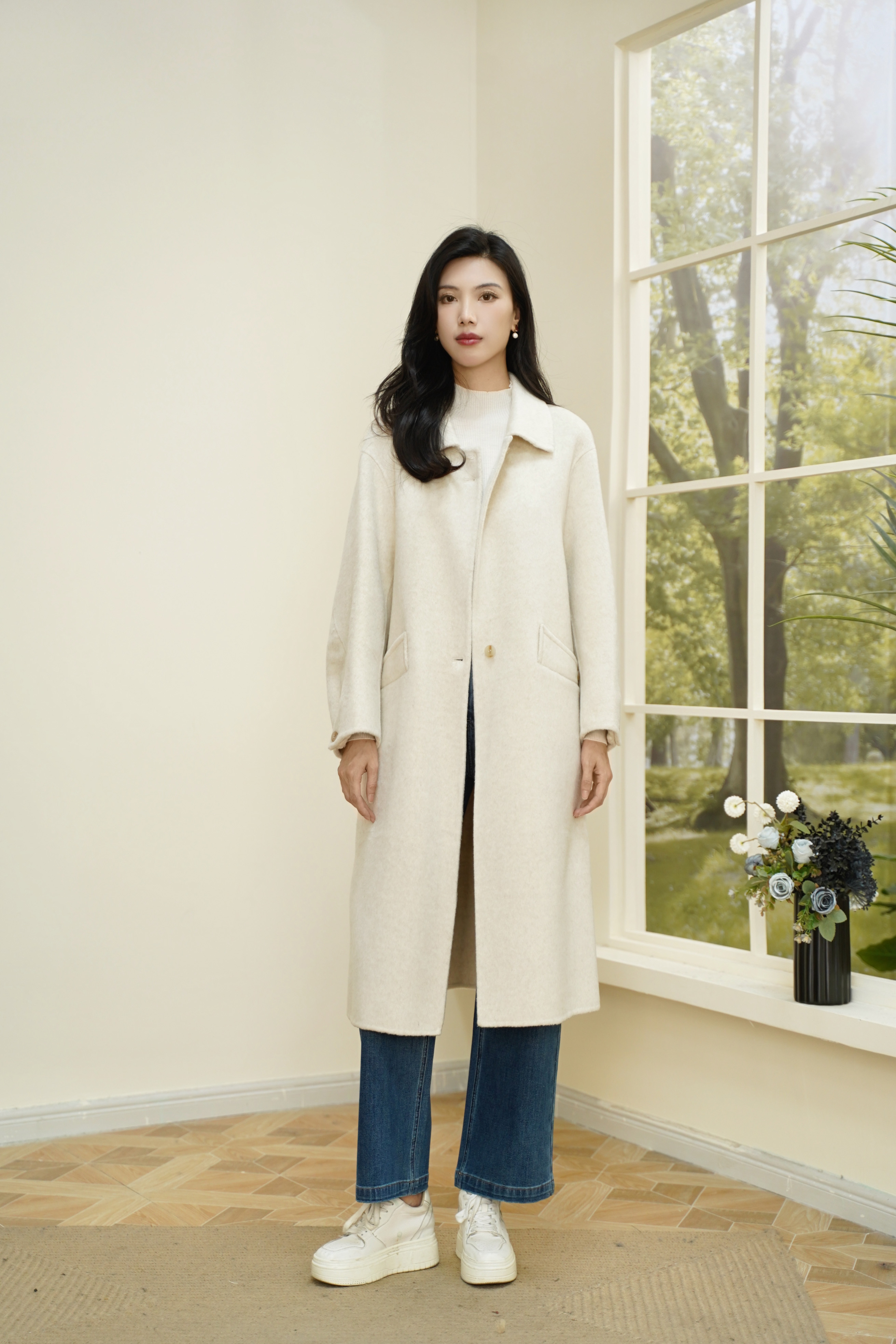 预售 臣禾 【花苞袖口大衣】翻领中长款毛呢外套 JZ254080581