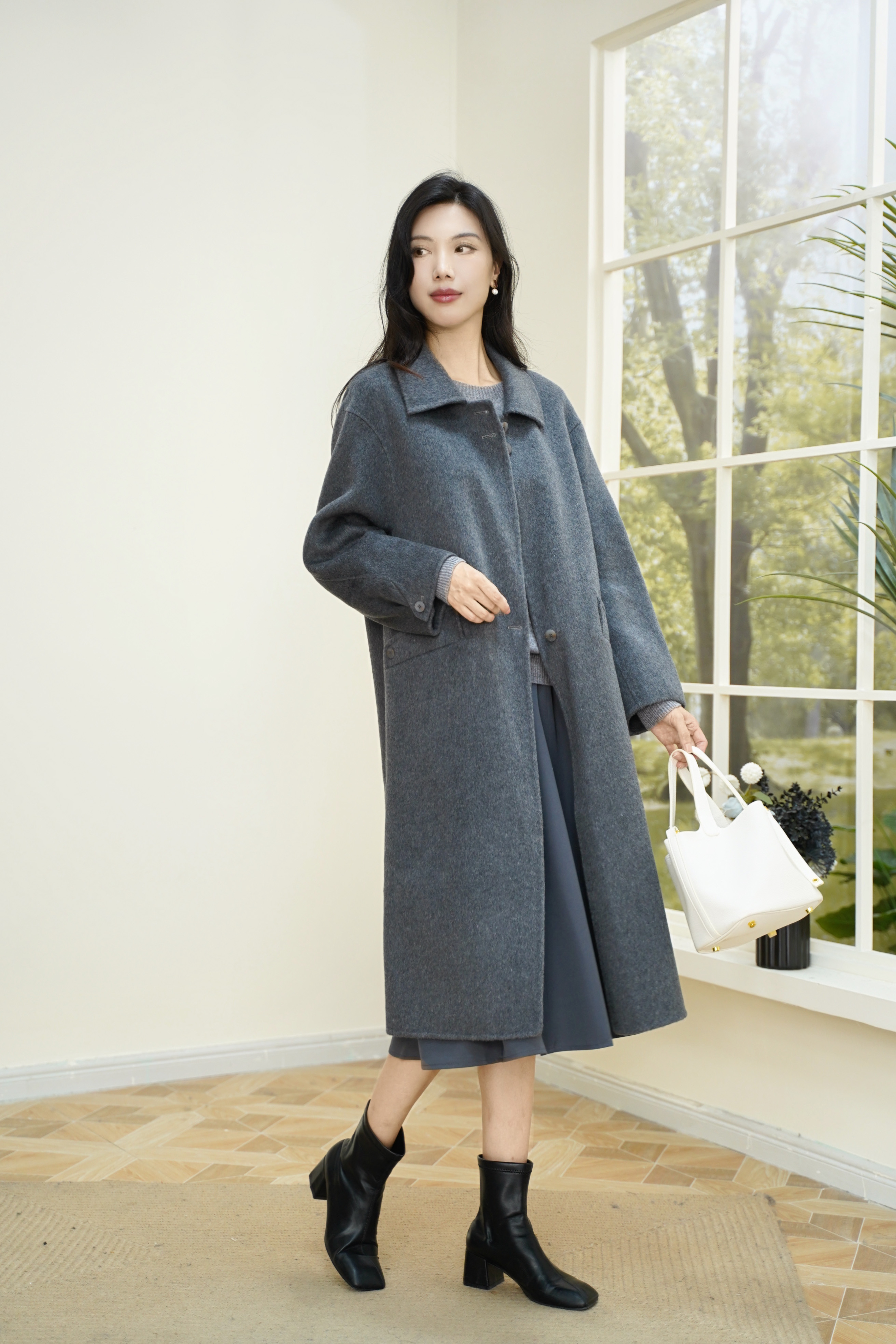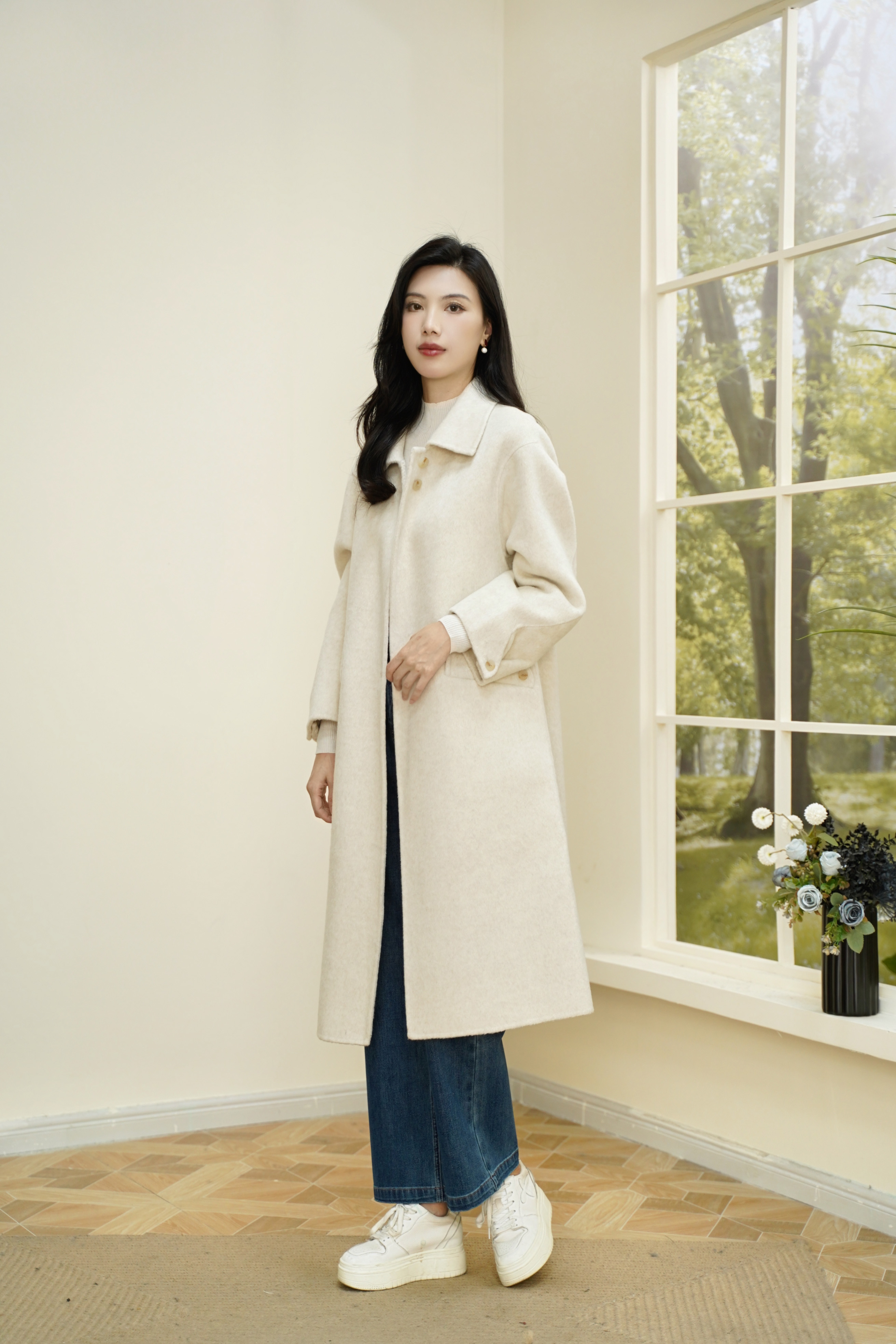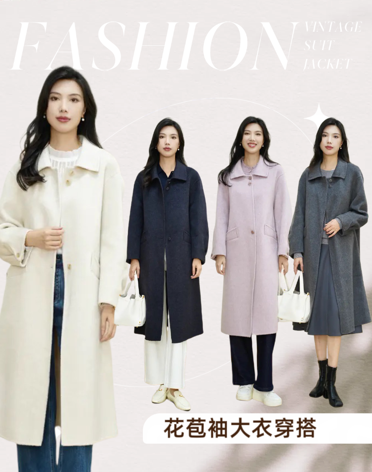 预售 臣禾 【花苞袖口大衣】翻领中长款毛呢外套 JZ254080581