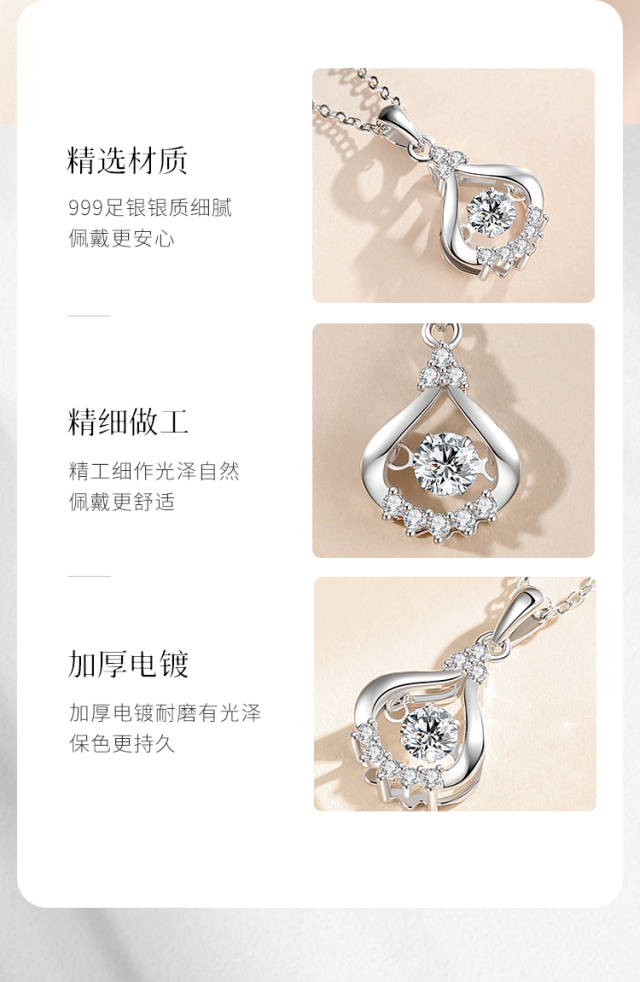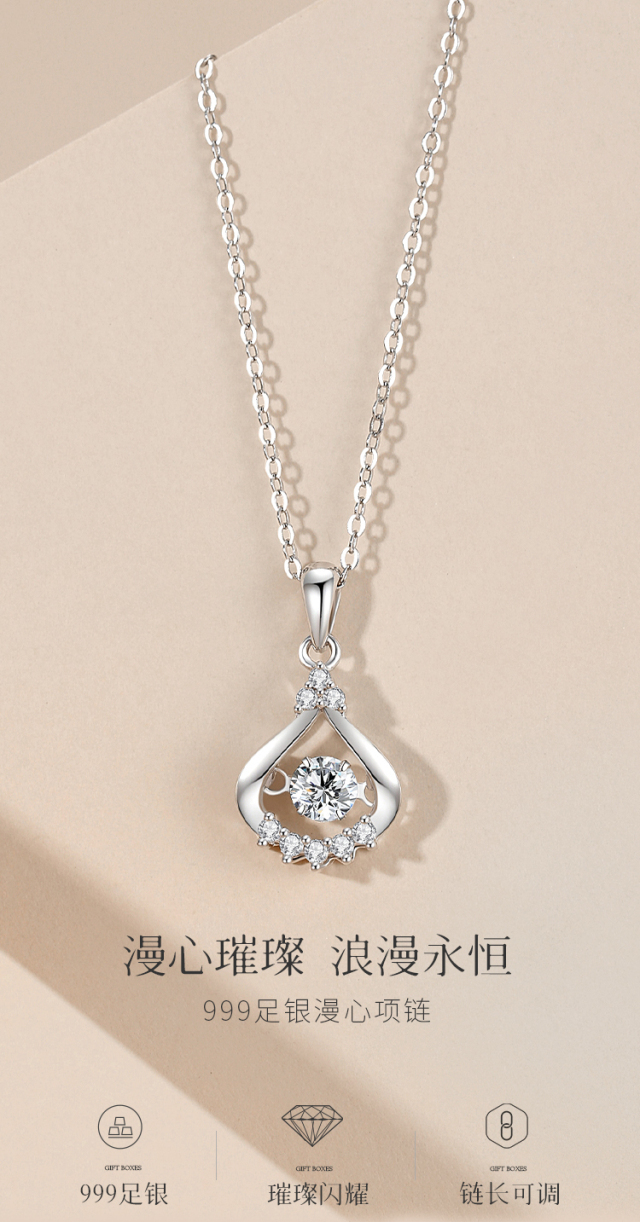 Winy999足银漫心项链送女友闺蜜节日生日礼物