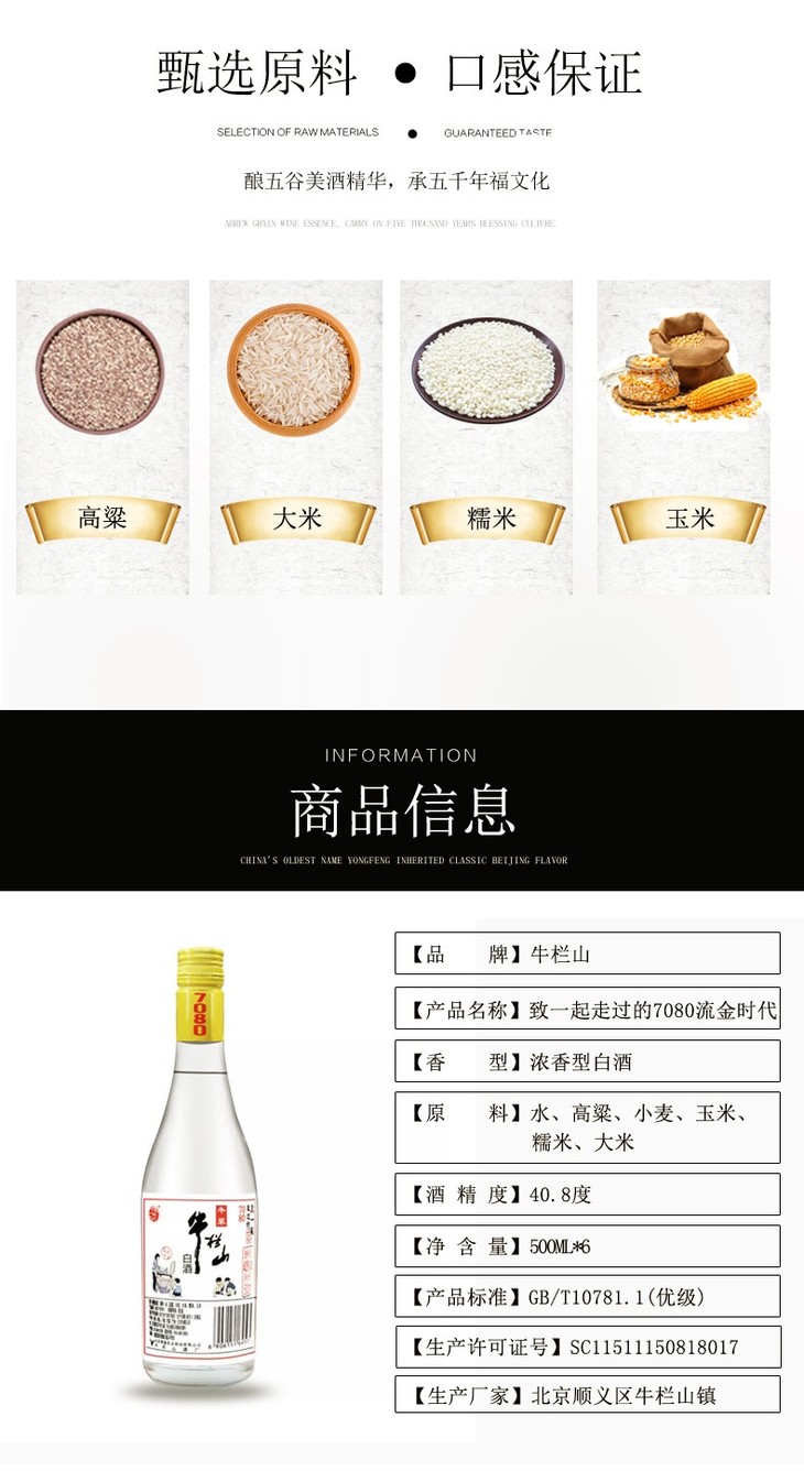 【推荐】牛栏山二锅头品鉴 致一起走过的7080流金时光 40.8度浓香型白酒礼盒装500ml*6瓶白酒整箱
