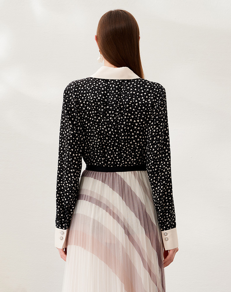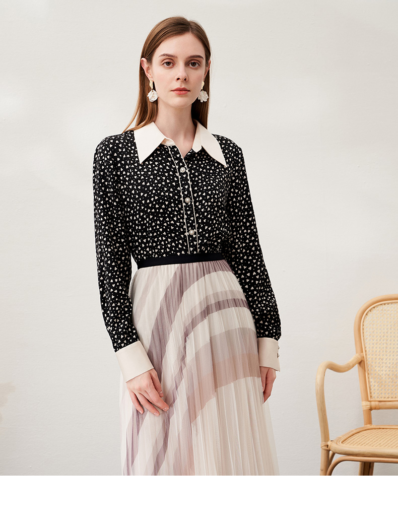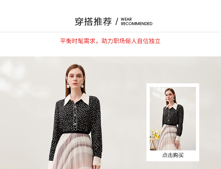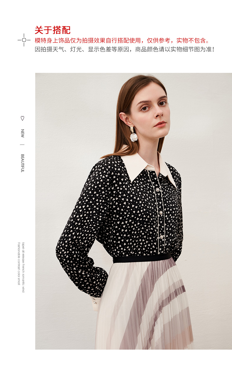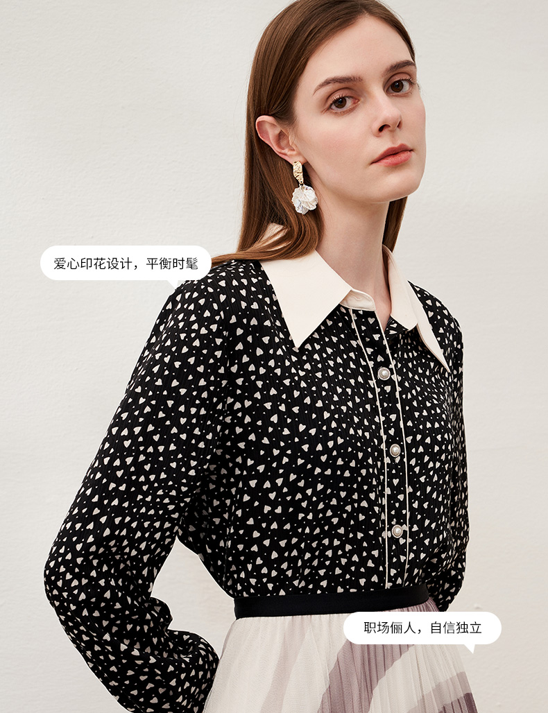 EITIE爱特爱春季新款洋气职业干练显瘦印花衬衫上衣6909605