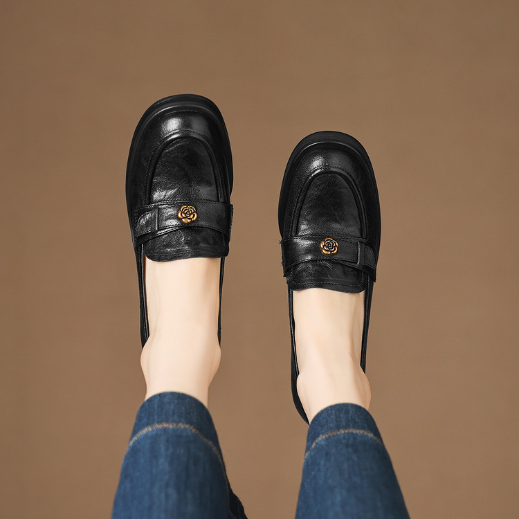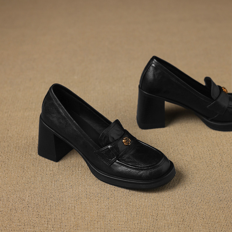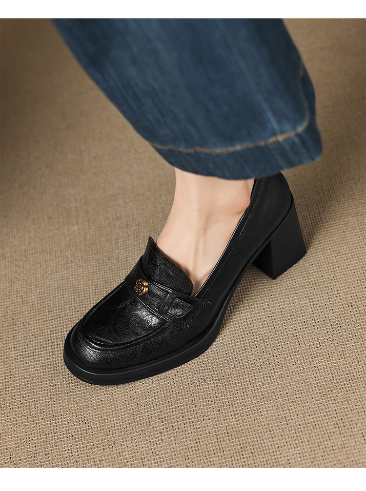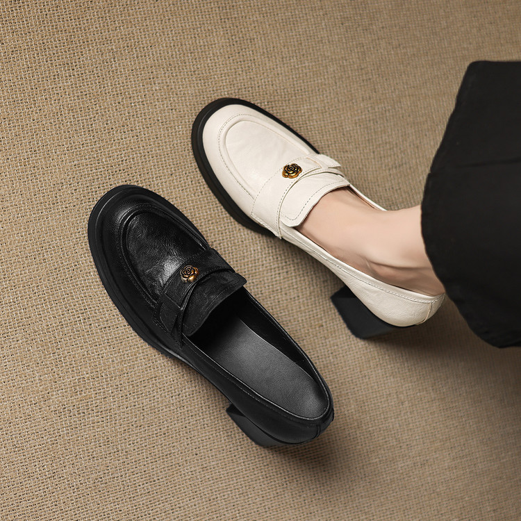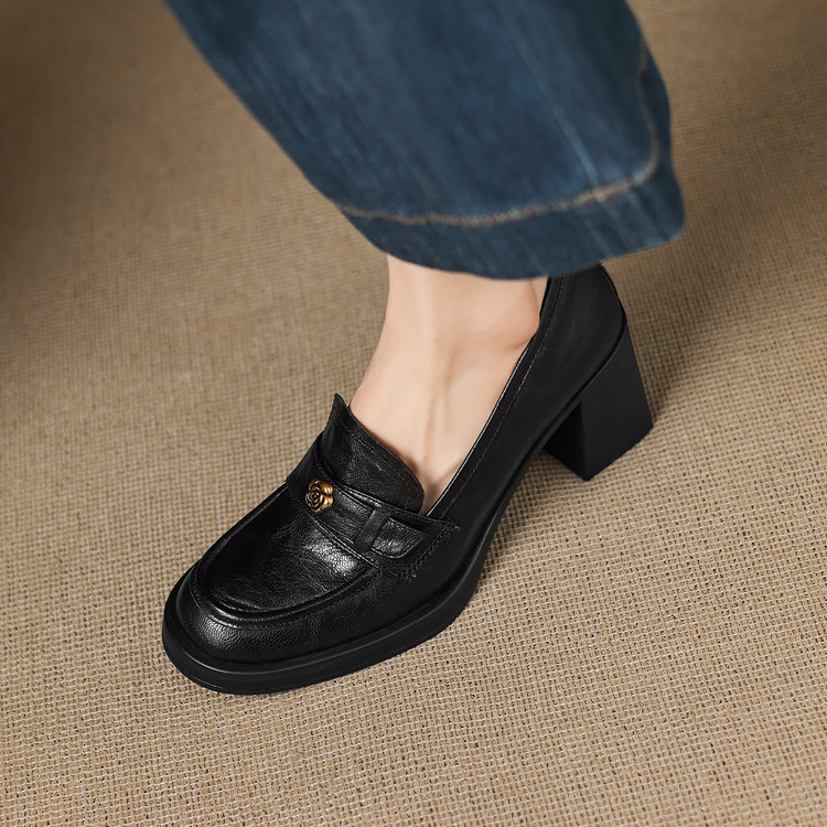 【预售5天】高级感!山茶花乐福鞋女新款法式粗跟黑色高跟英伦风小皮鞋YY&YY232