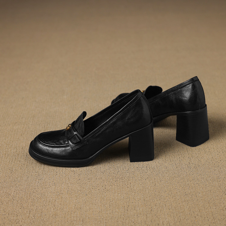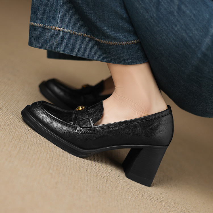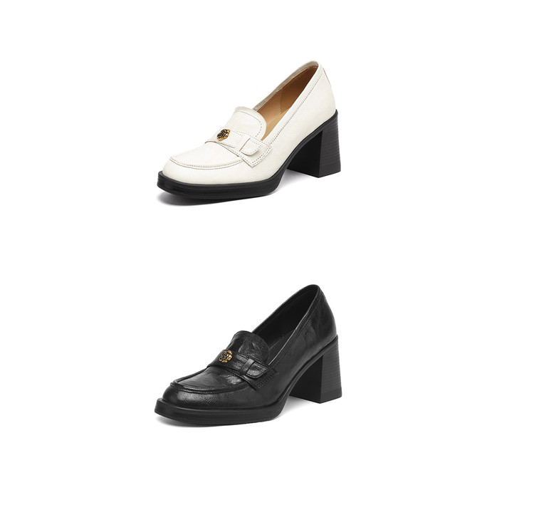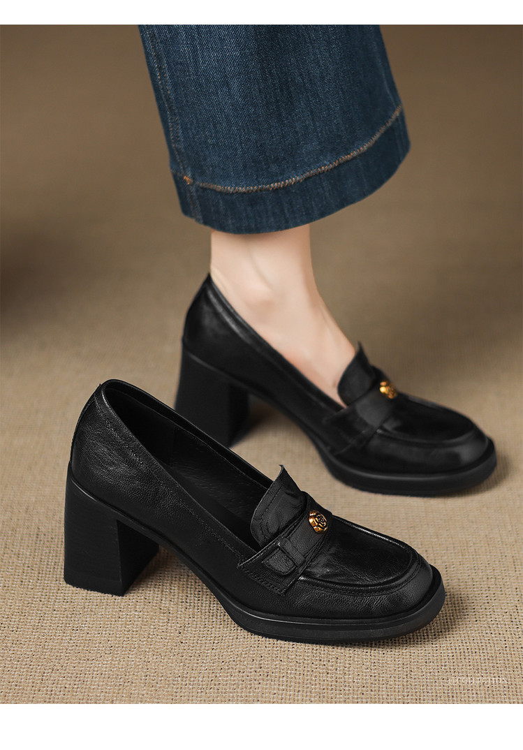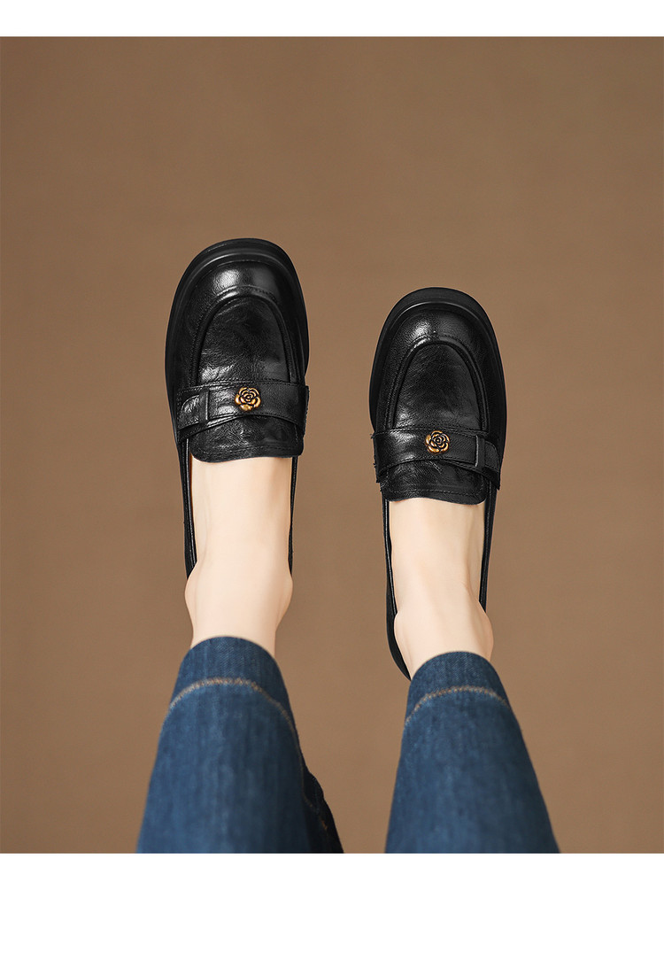 【预售5天】高级感!山茶花乐福鞋女新款法式粗跟黑色高跟英伦风小皮鞋YY&YY232