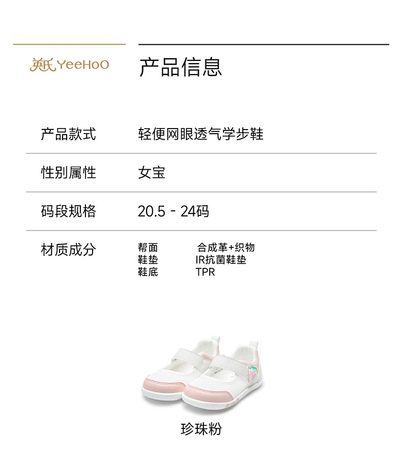 【商场同款】英氏步前鞋软底女宝鞋春夏网眼鞋透气舒适抗菌学步鞋