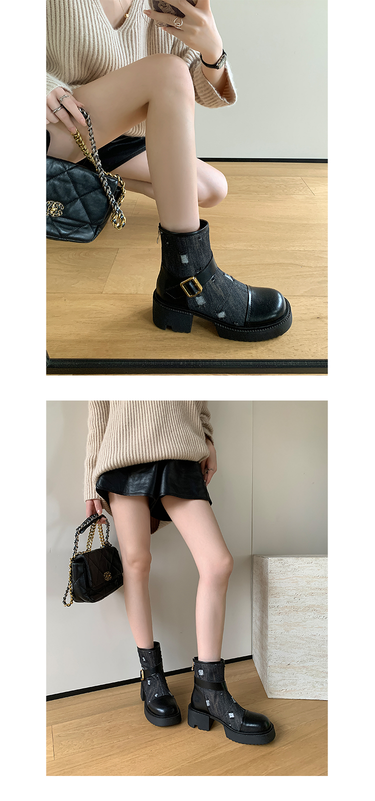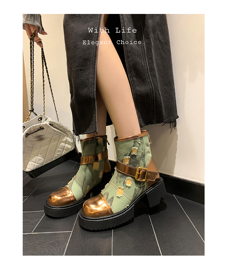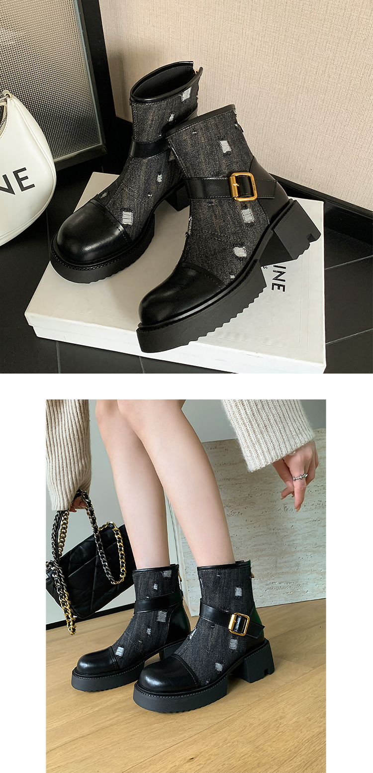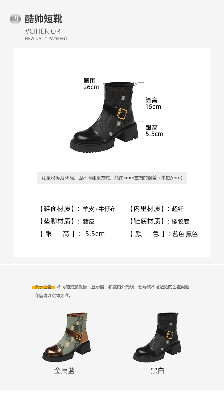 时尚个性,牛仔风潮甜酷厚底辣妹短靴QQJ-JZ-979