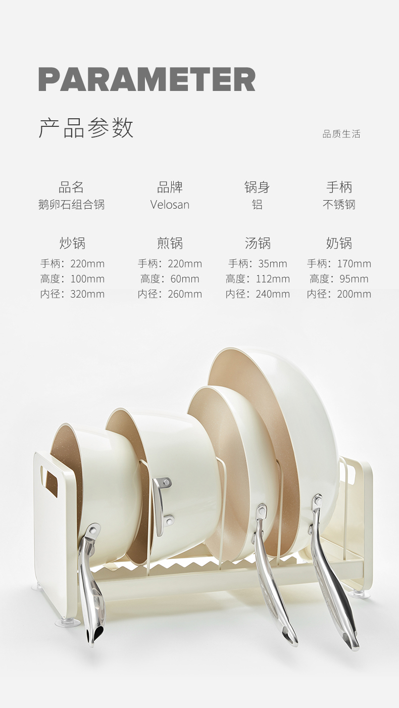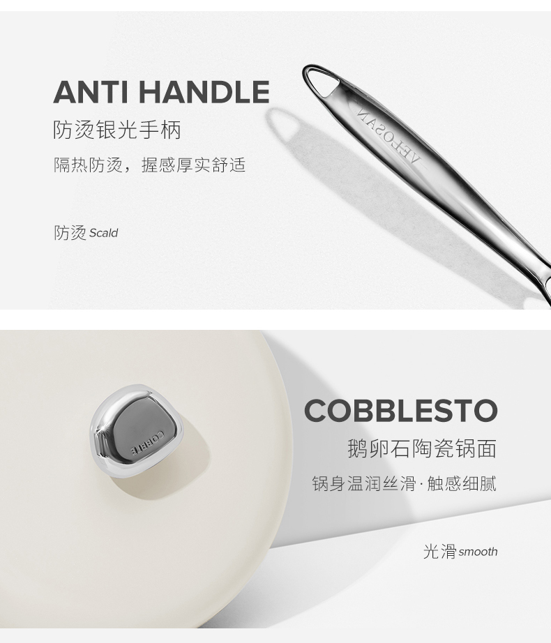 Velosan温仑山无涂层不粘锅炒锅家用炒菜锅陶瓷鹅卵石电磁燃气