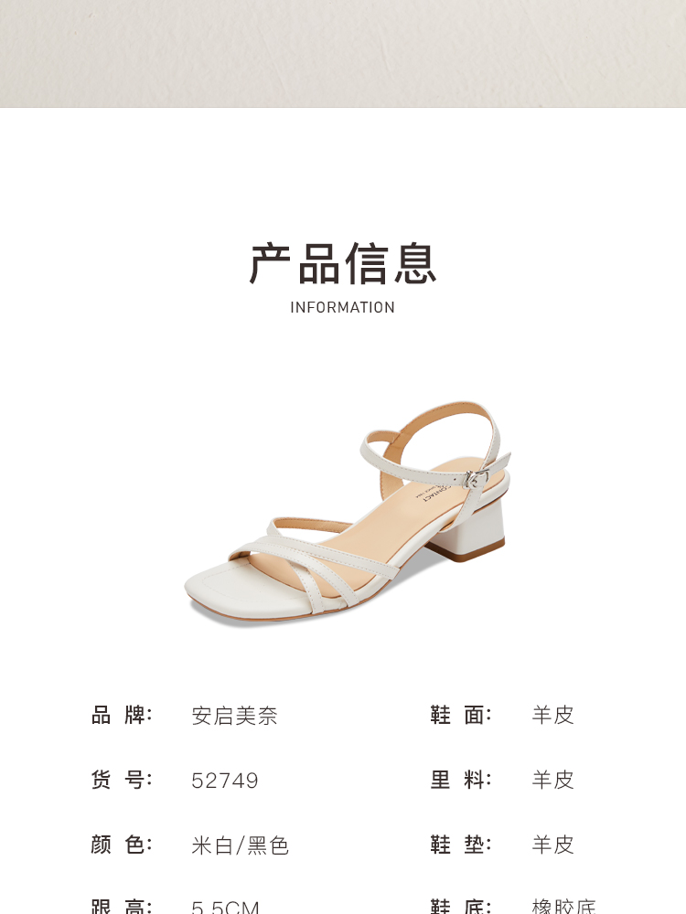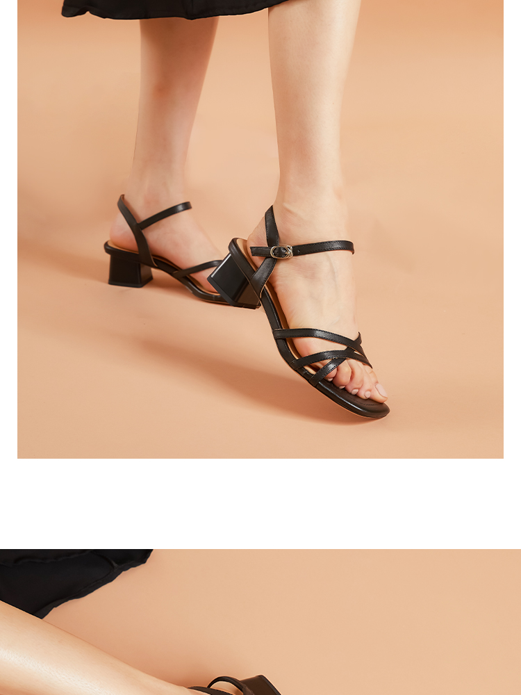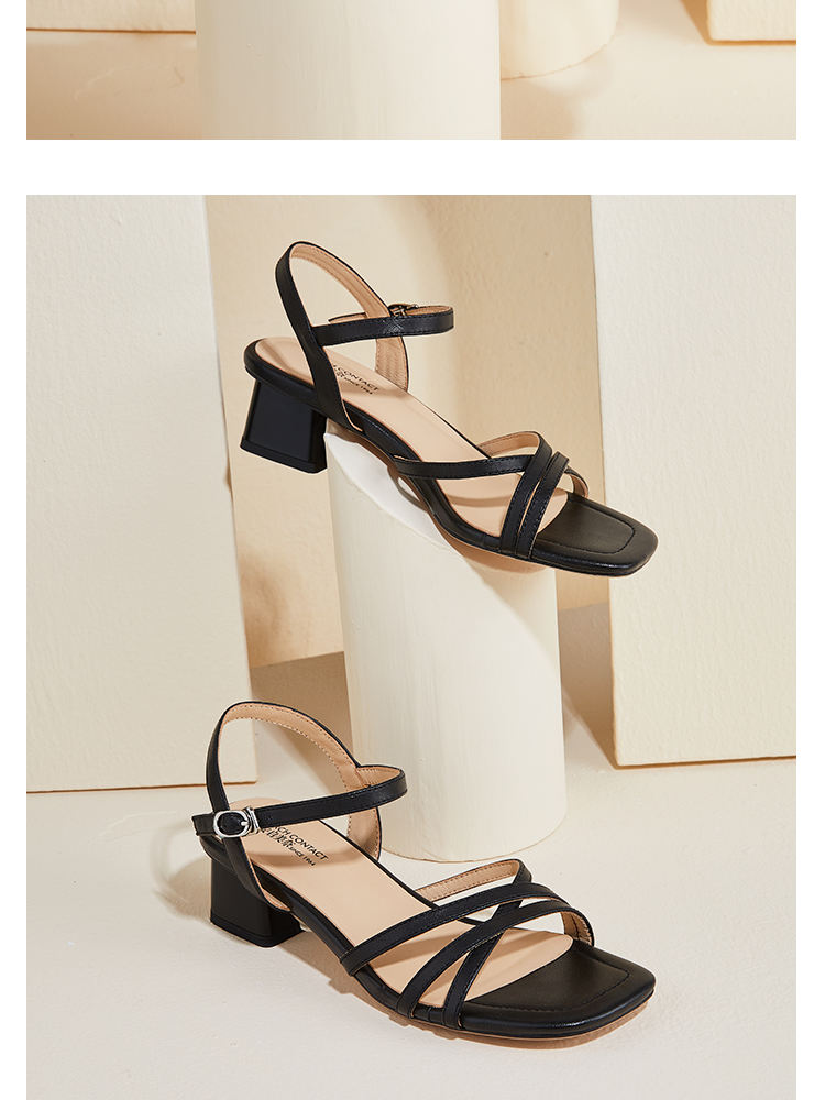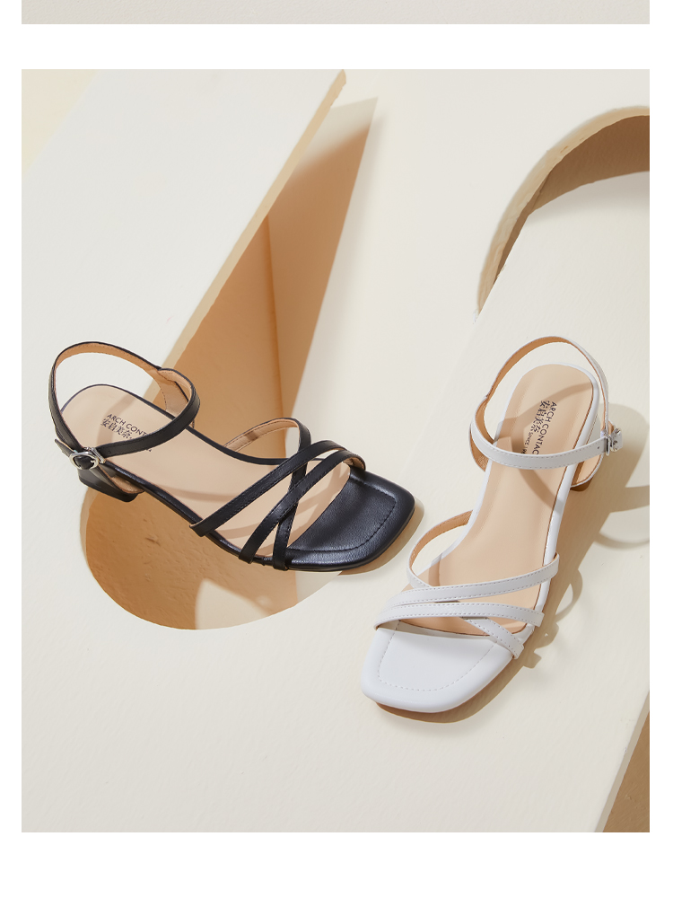 高跟凉鞋 | ARCHCONTACT安启美奈 日系舒适简约百搭 方头一字带鞋52749