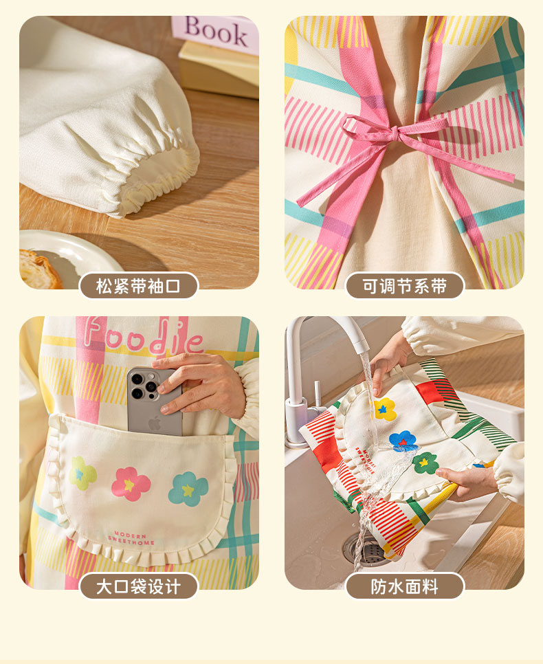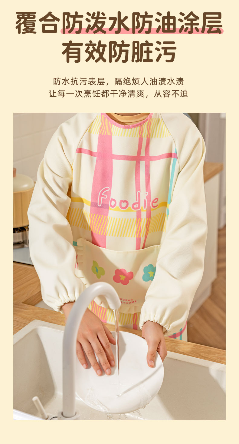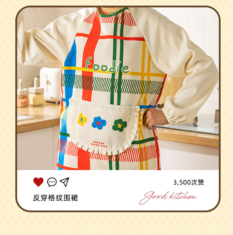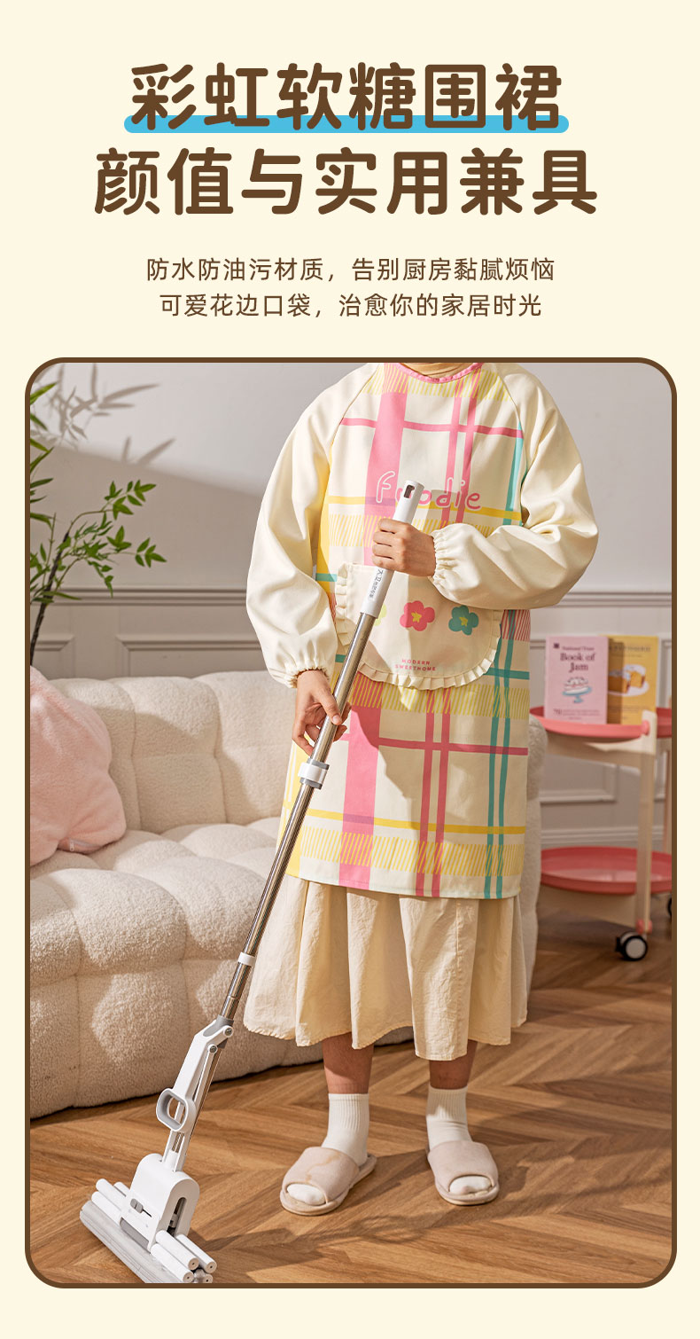 摩登主妇彩虹软糖长袖围裙厨房家用新款反穿防油防水年轻款女罩衣