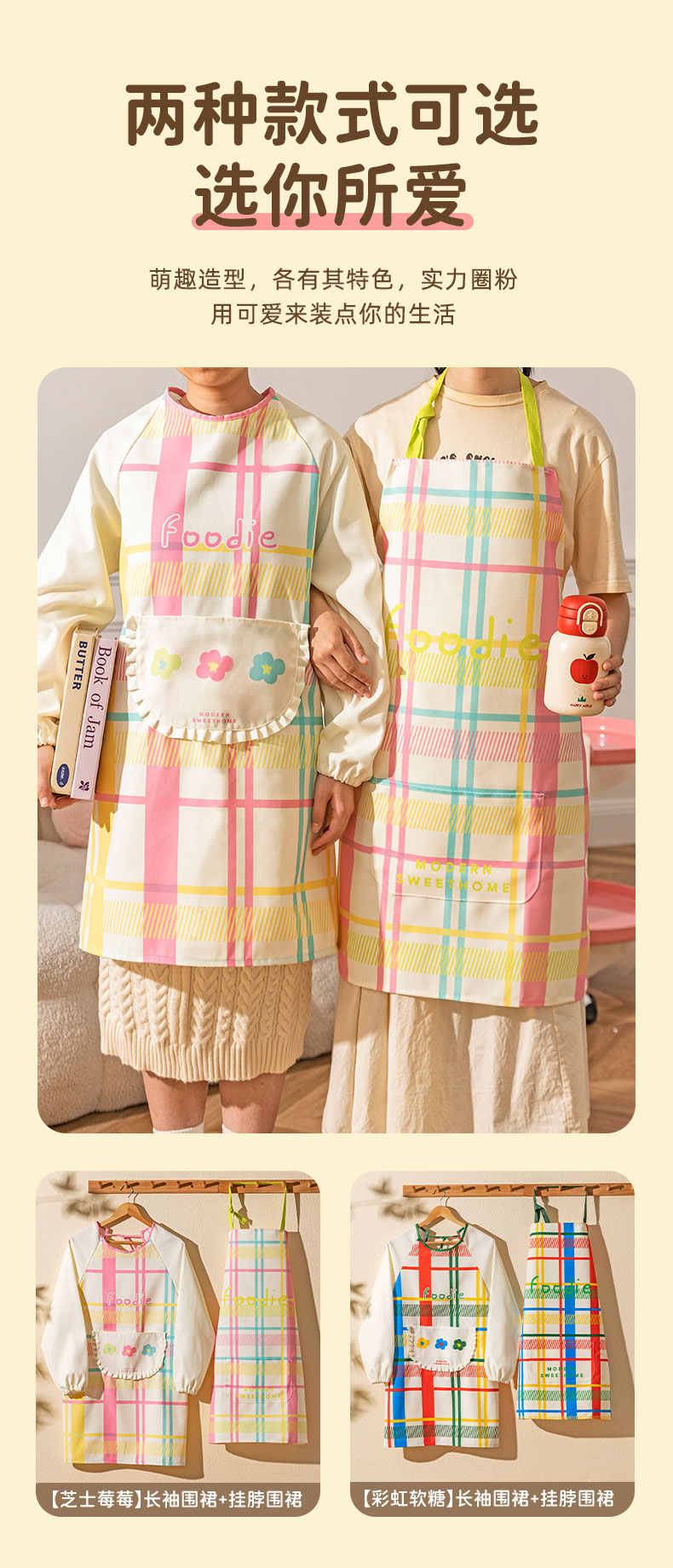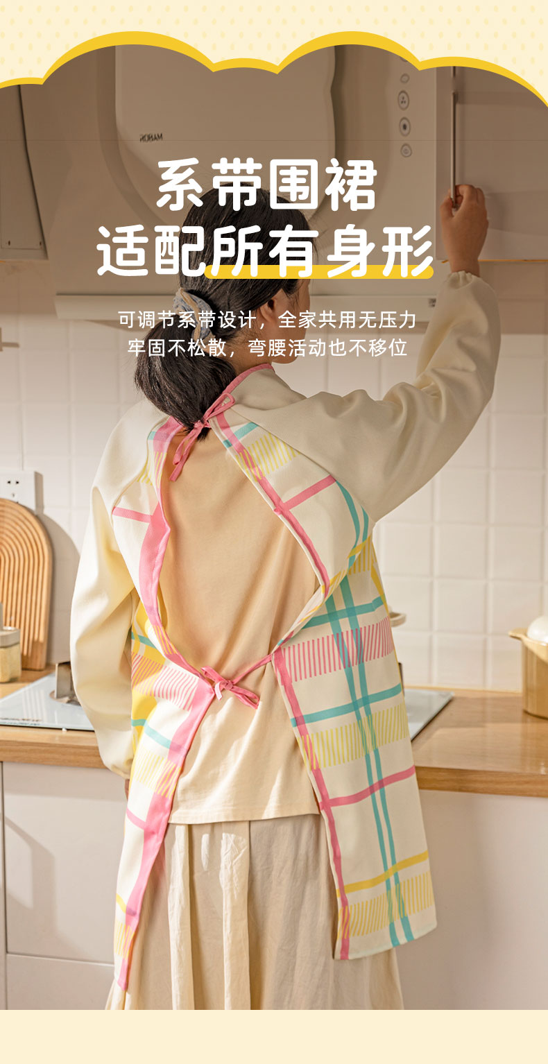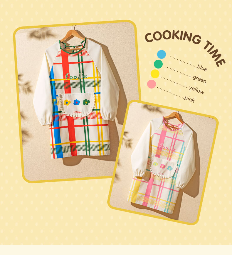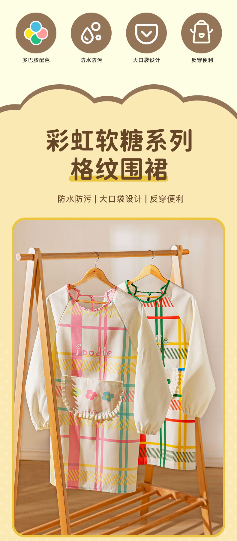 摩登主妇彩虹软糖长袖围裙厨房家用新款反穿防油防水年轻款女罩衣
