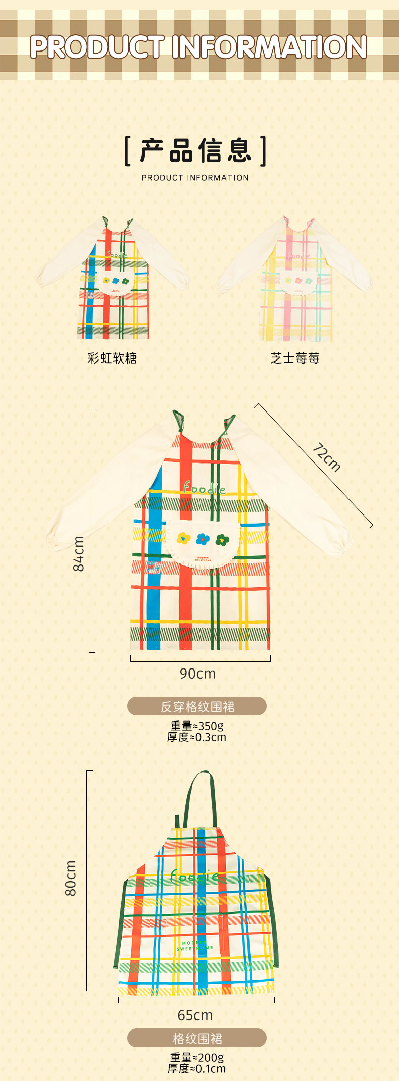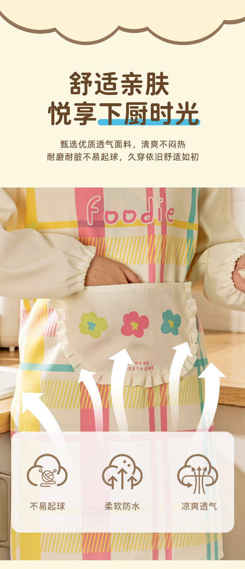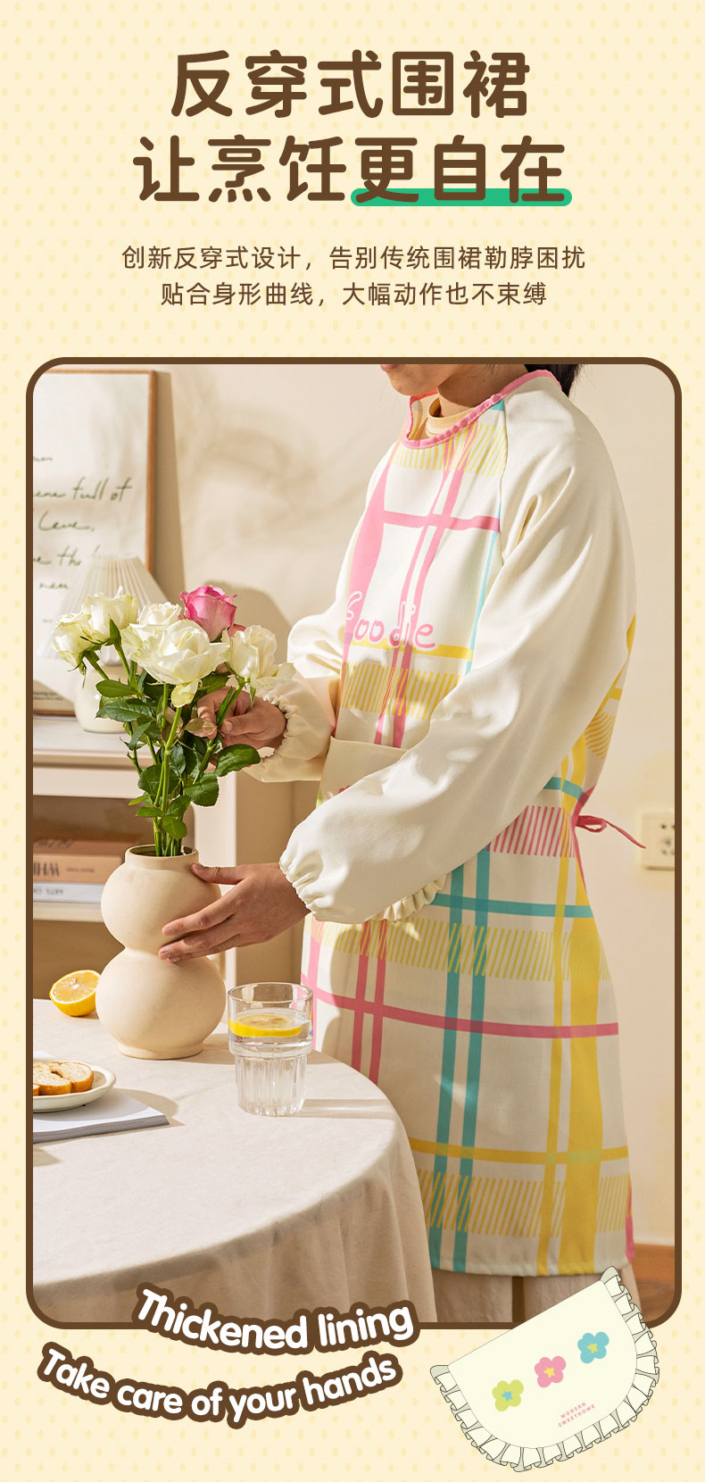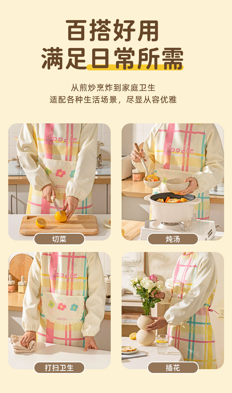 摩登主妇彩虹软糖长袖围裙厨房家用新款反穿防油防水年轻款女罩衣