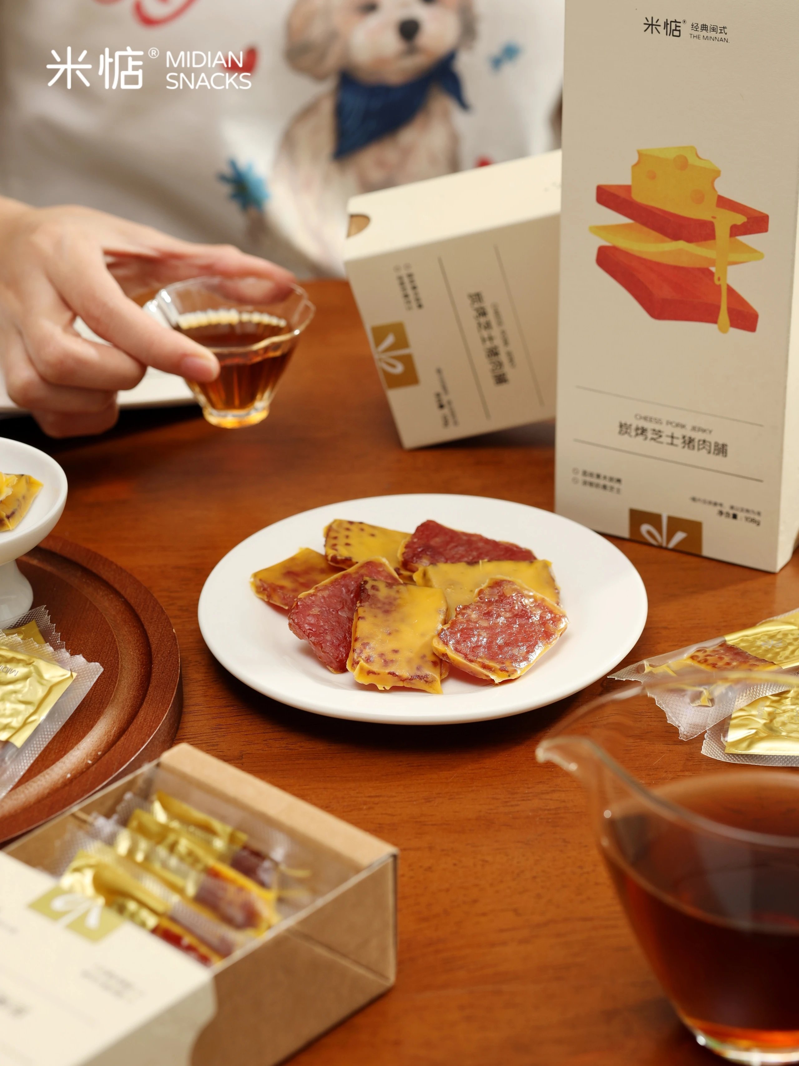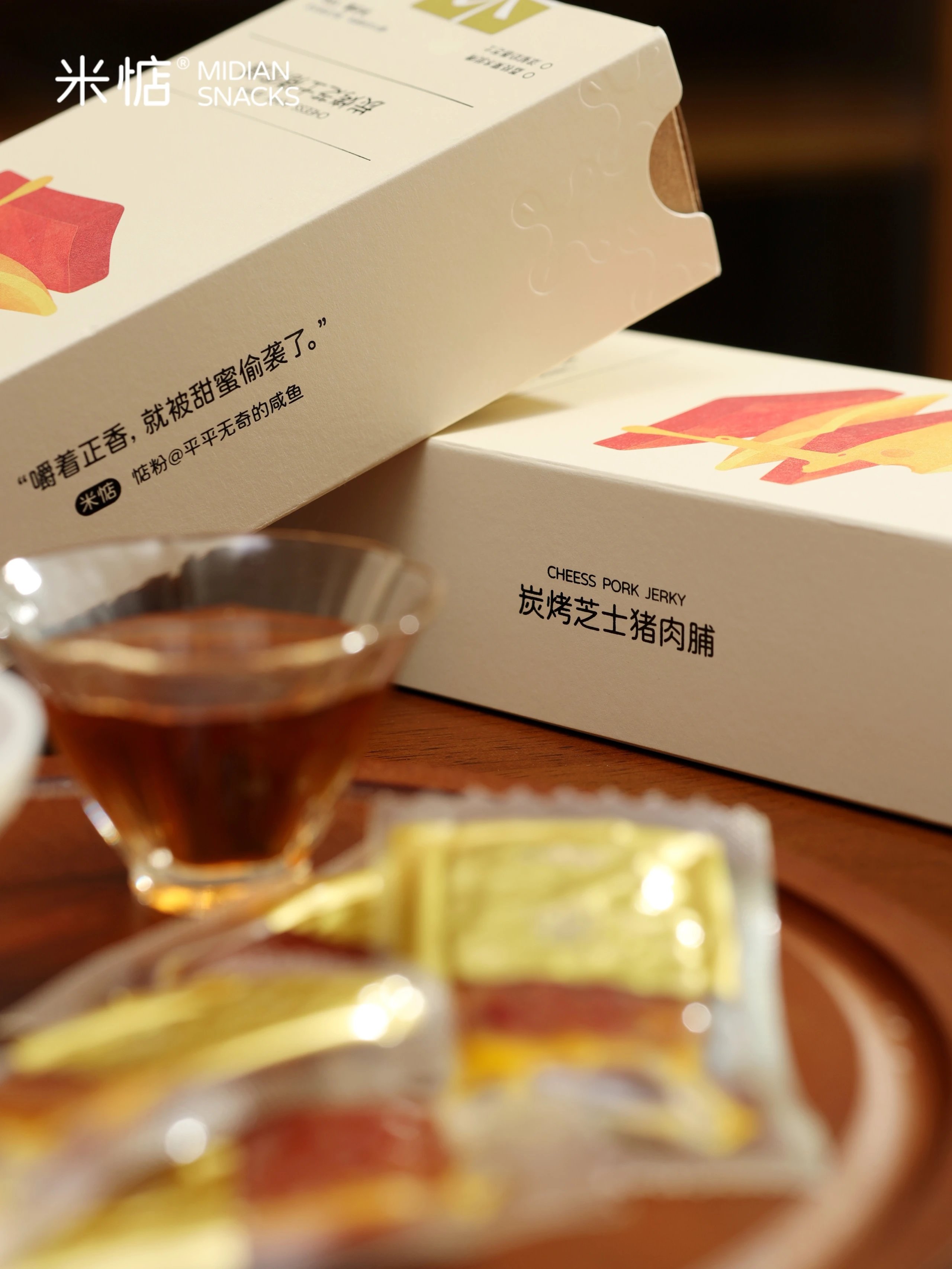 芝士控 快看过来 猪肉被芝士包围啦 【米惦 炭烧芝士猪肉片】猪肉片新吃法 芝香浓郁咸甜永动 机越嚼越香 开启味觉新体验,真后悔没有早点发现 精选新鲜原切肉,拒绝肉糜和淀粉 20%的进口安佳干酪,奶香浓郁 高蛋白,为健康加满分 古法炭烤工艺,特殊果木香 0添加香精、色素、防腐剂
