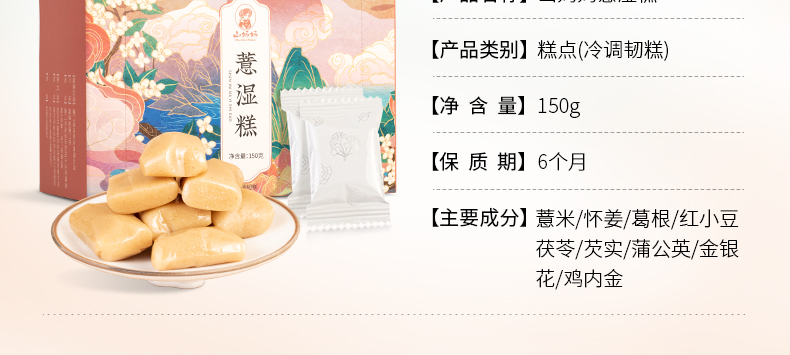 【山妈妈薏湿糕,买2送1】150g/盒 祛湿健脾独立包装柔韧口感清甜醇厚