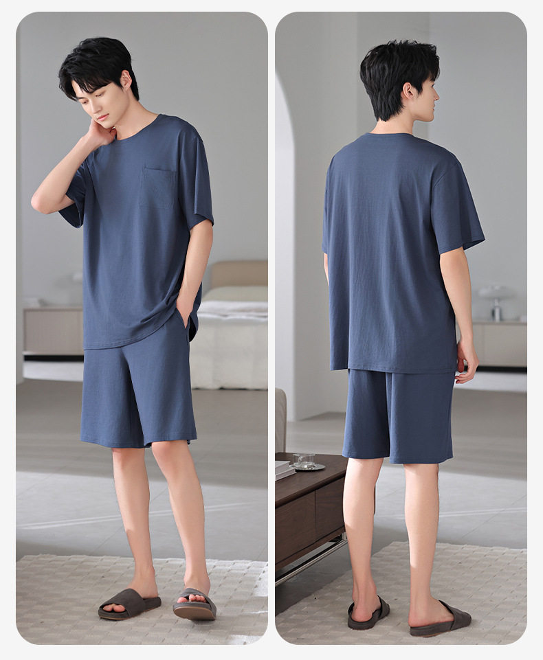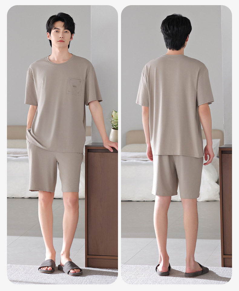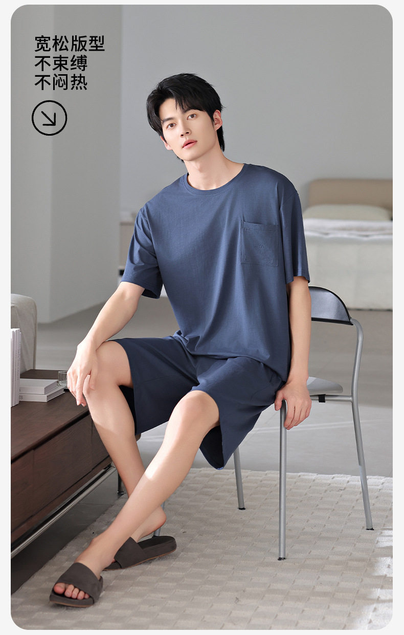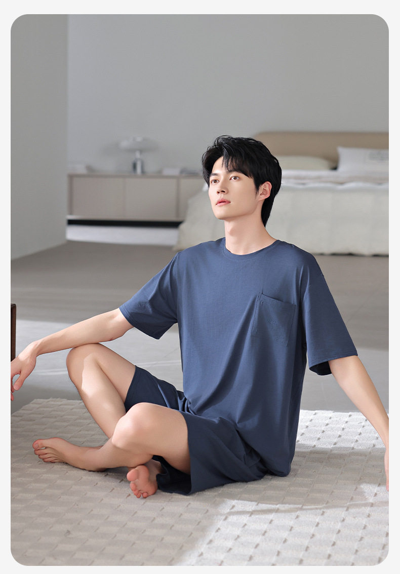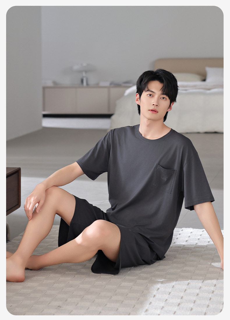 夏季男士睡衣莫代尔短袖短裤两件套装纯色休闲舒适宽松青年家居服 JL-HYM4840