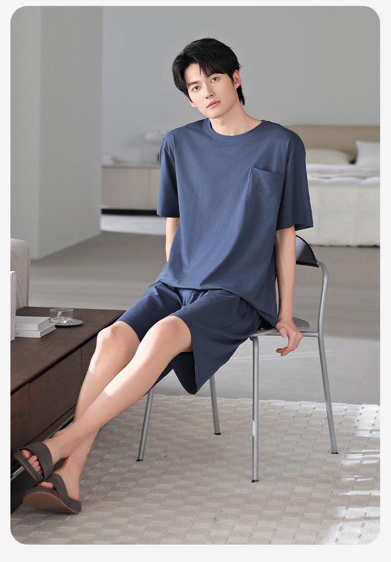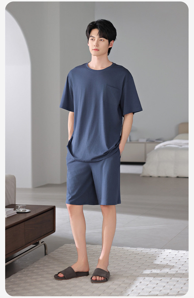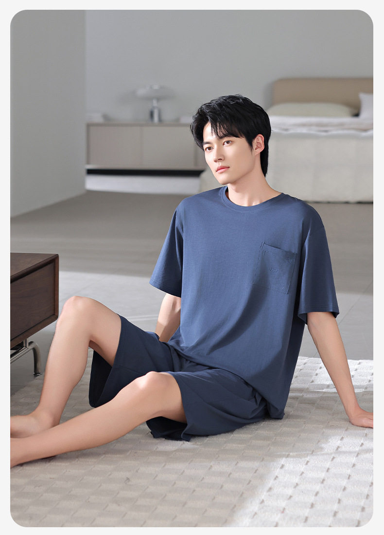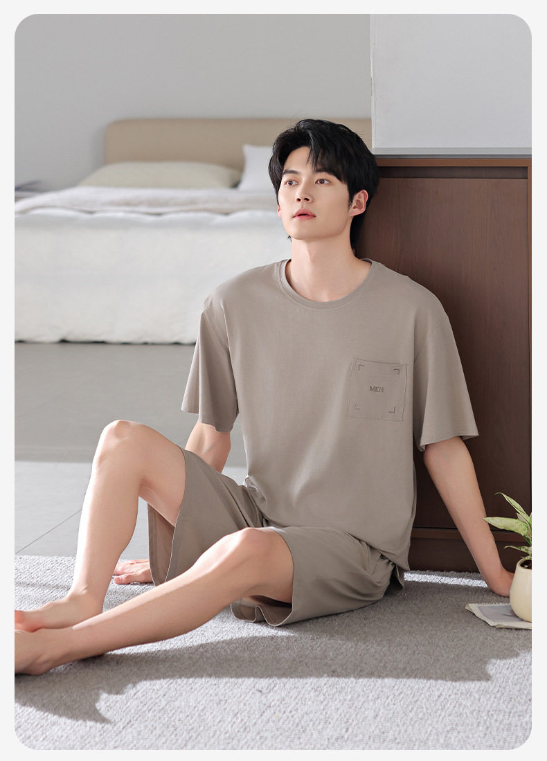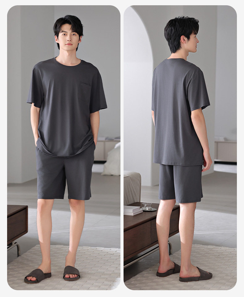 夏季男士睡衣莫代尔短袖短裤两件套装纯色休闲舒适宽松青年家居服 JL-HYM4840