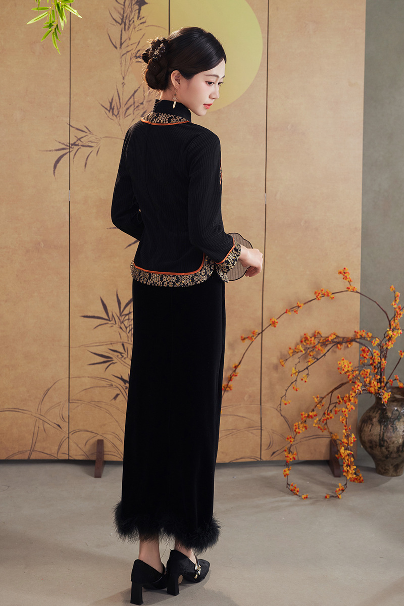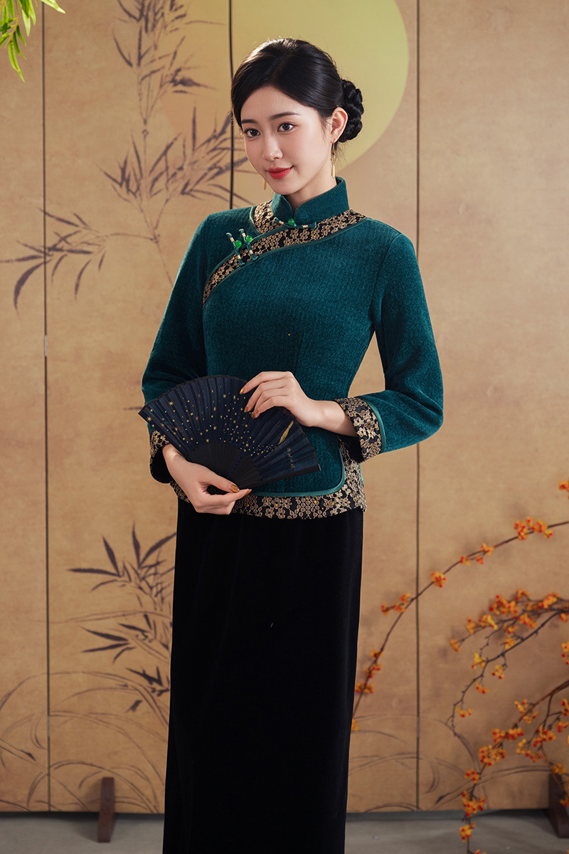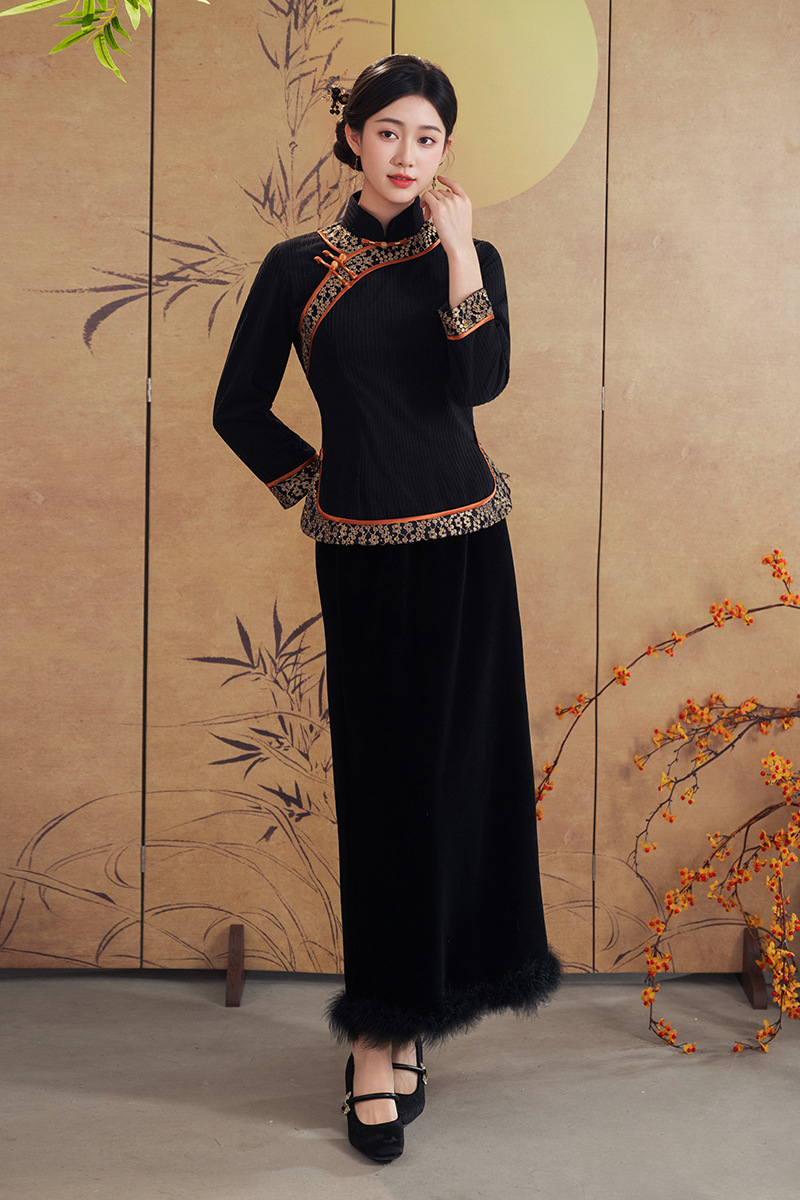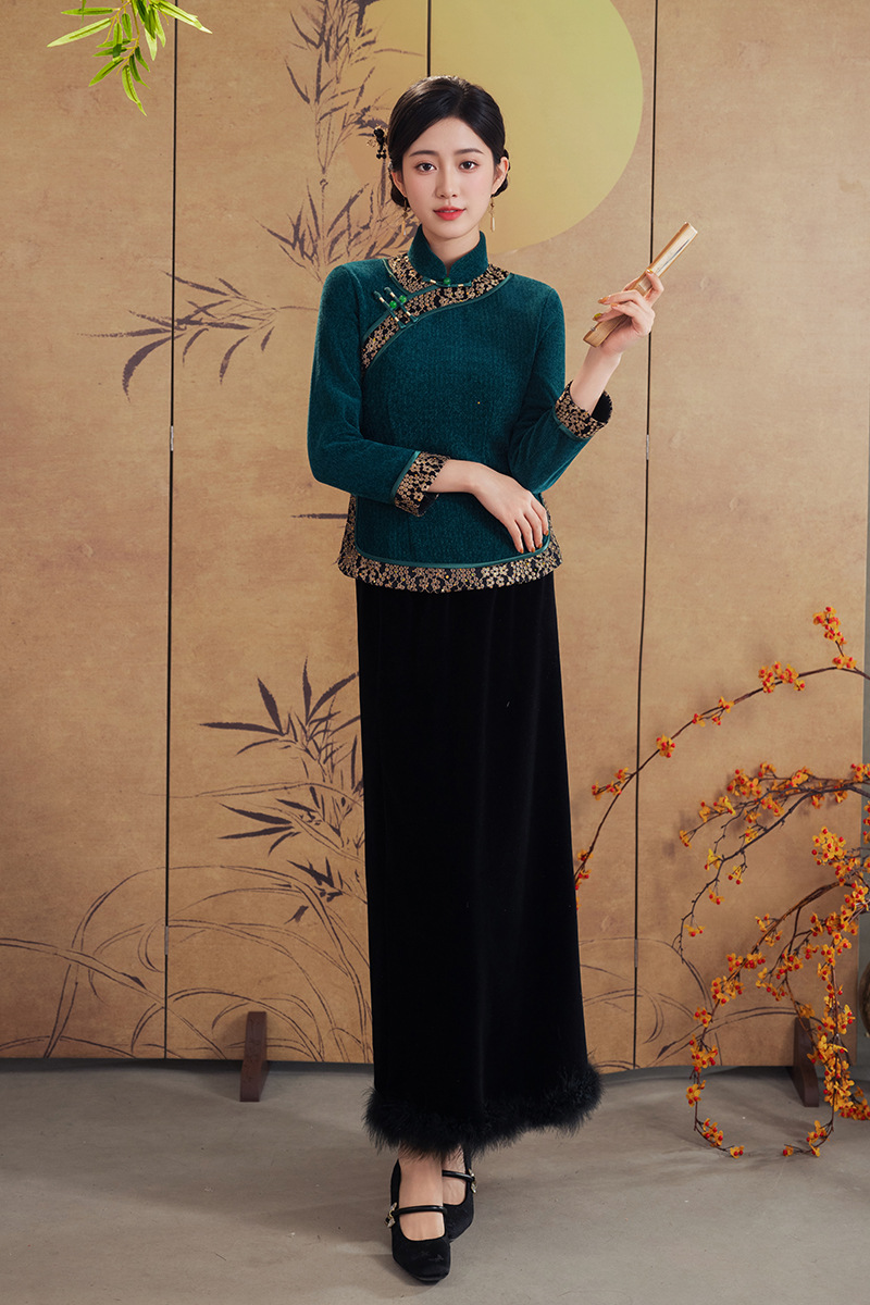 A25343 秋冬季新款新中式冬款妈妈装旗袍两件套日常可穿高级感民族风上衣