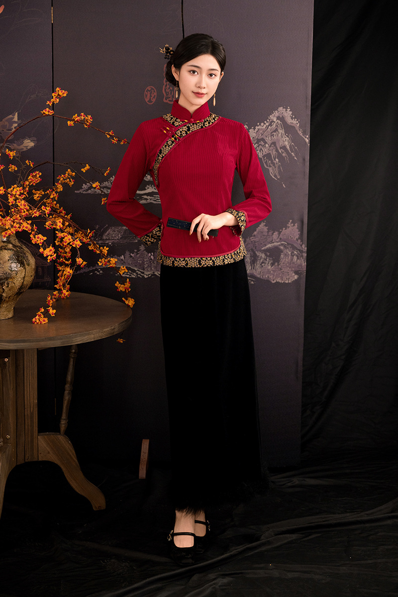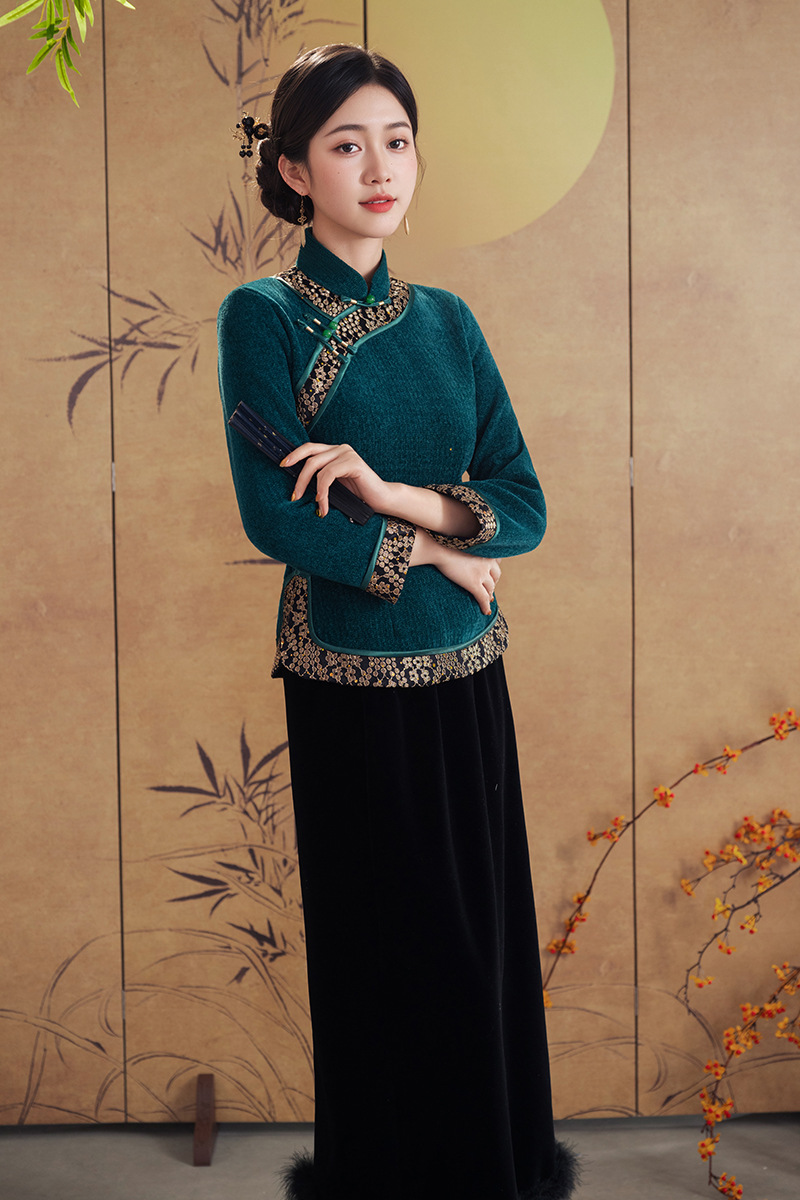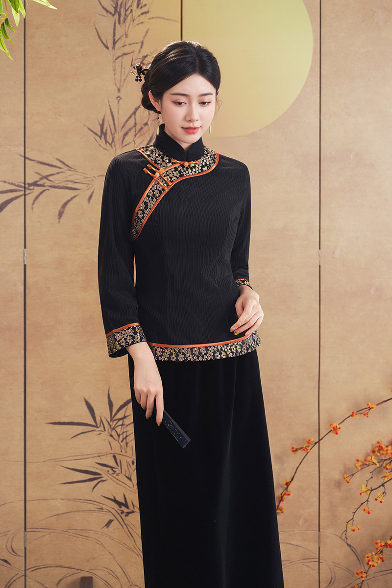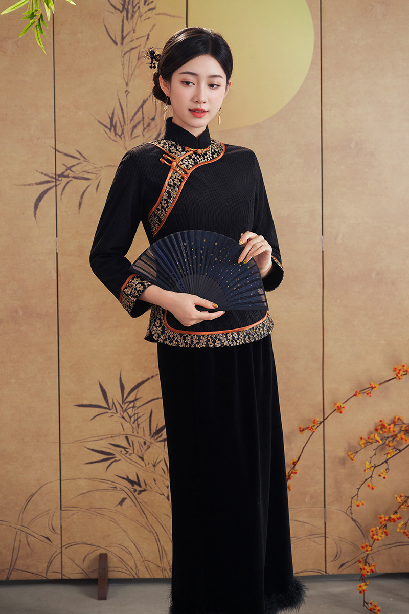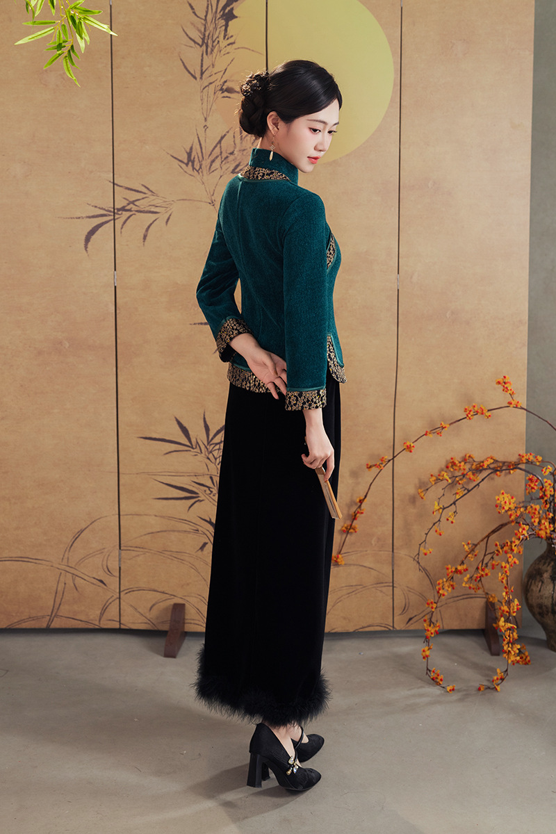 A25343 秋冬季新款新中式冬款妈妈装旗袍两件套日常可穿高级感民族风上衣
