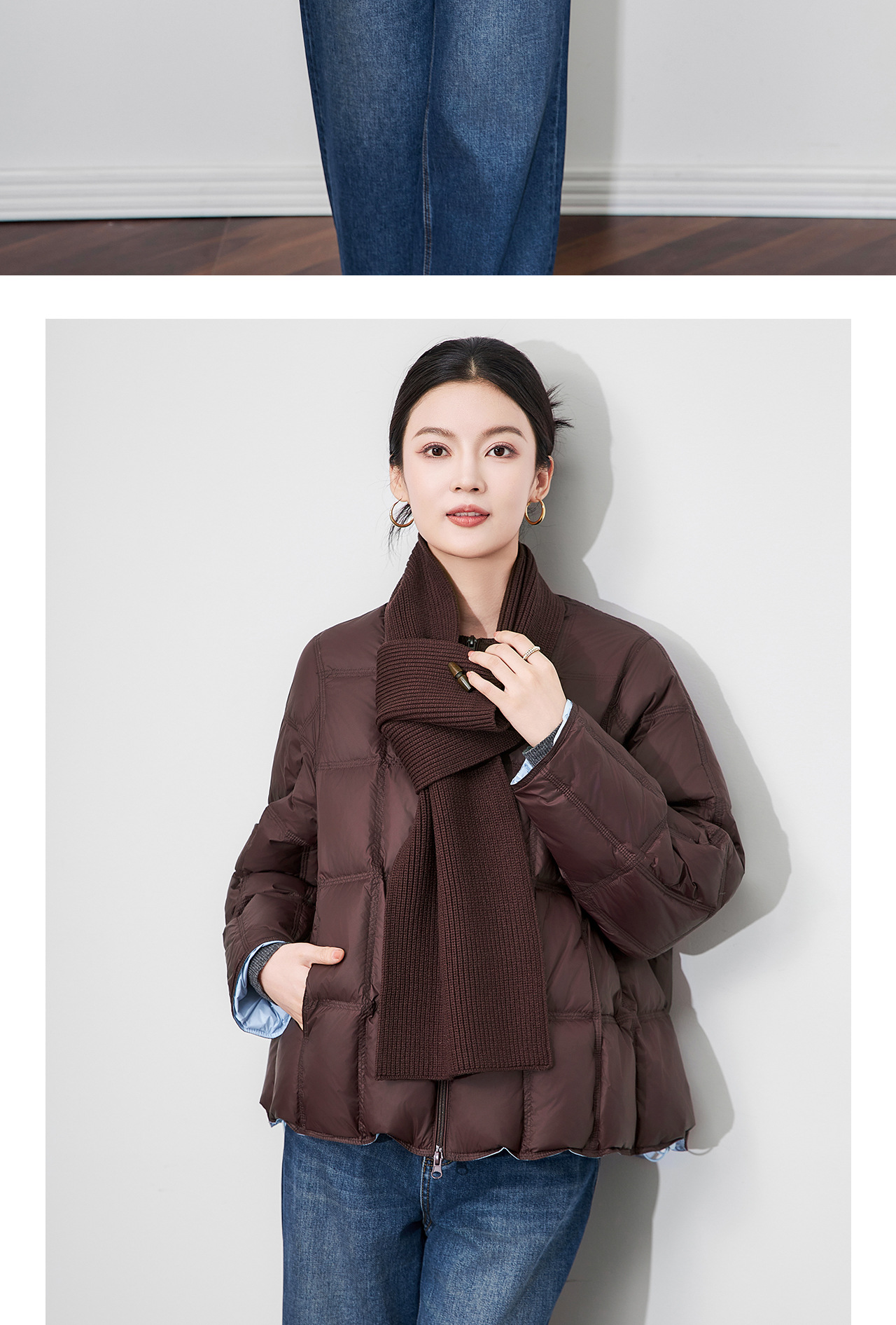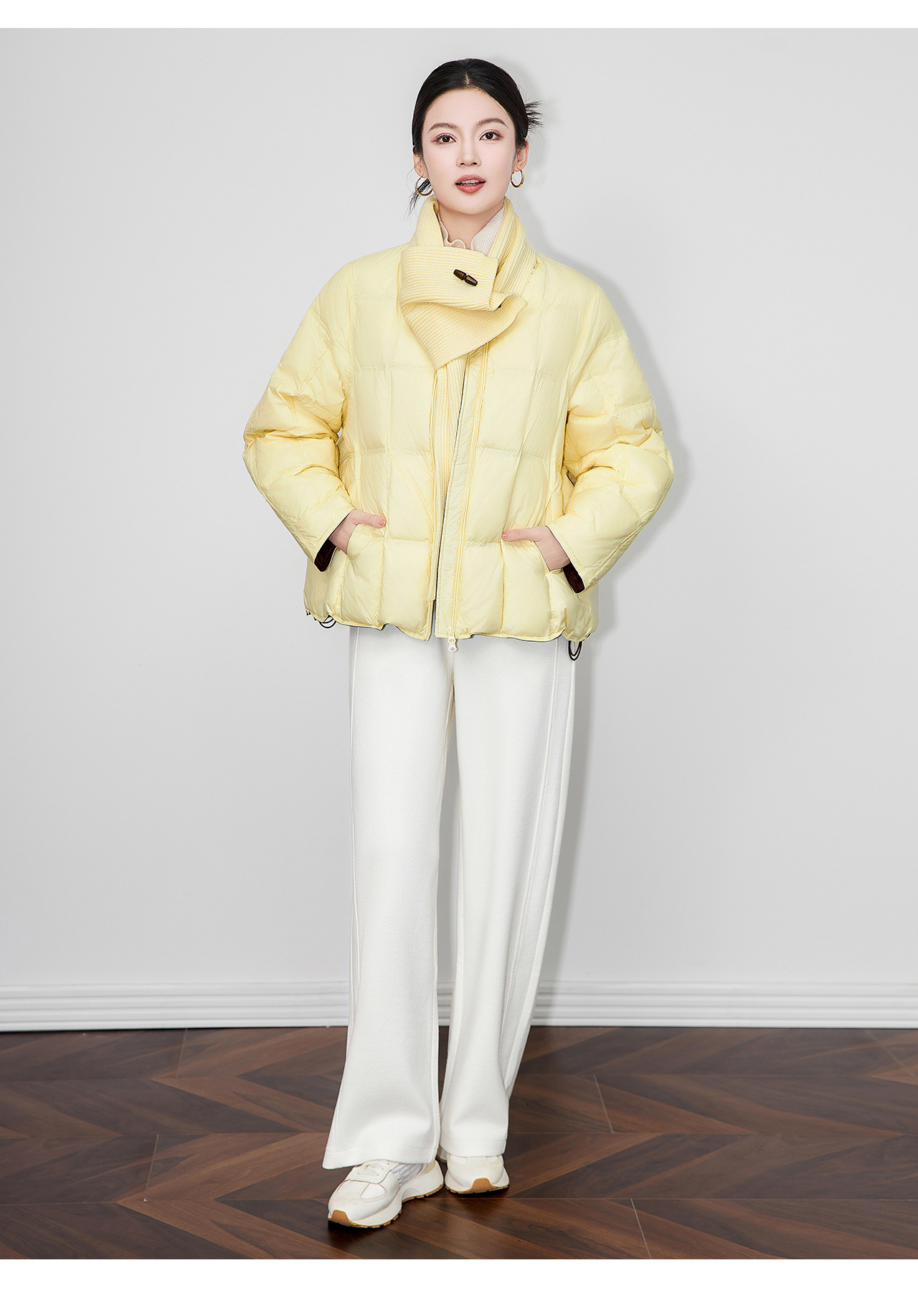 「高货wl」全新升级【铂金会员413/天猫559/差价146】(12422)洛诗琳含围巾两件套90白鸭绒短款羽绒服2025冬季防风保暖泡芙外套