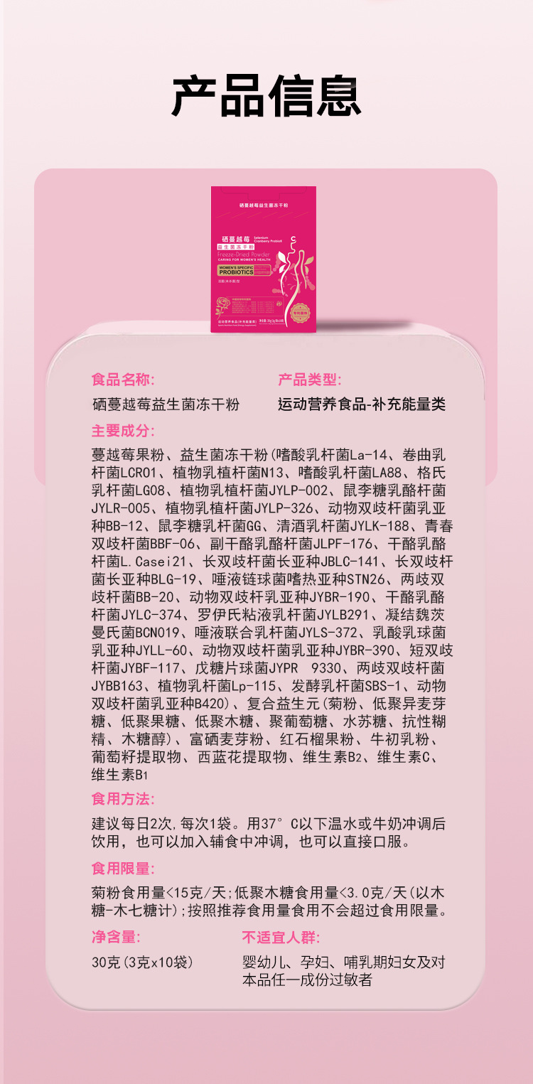 【高活性益生菌,活菌量足】HEESSU赫塑富硒蔓越莓益生菌冻干粉18000亿固体饮料蔓越莓益生菌。xb