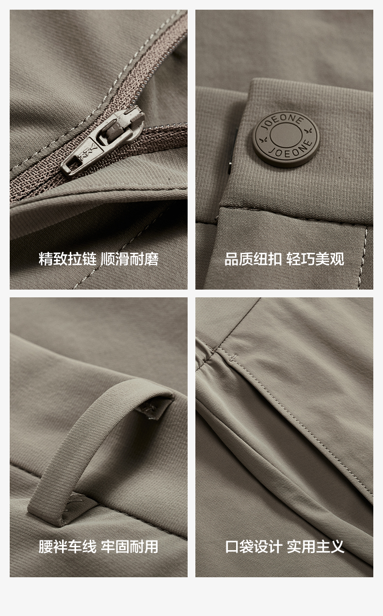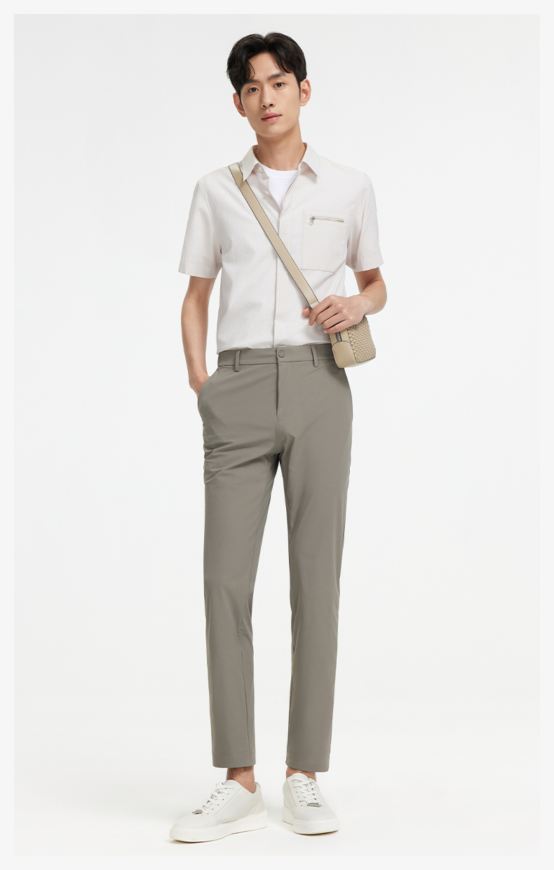 九牧王 旅途疗愈 夏修身版无褶咖色冰爽经编横纹肌理休闲裤JA5D20432