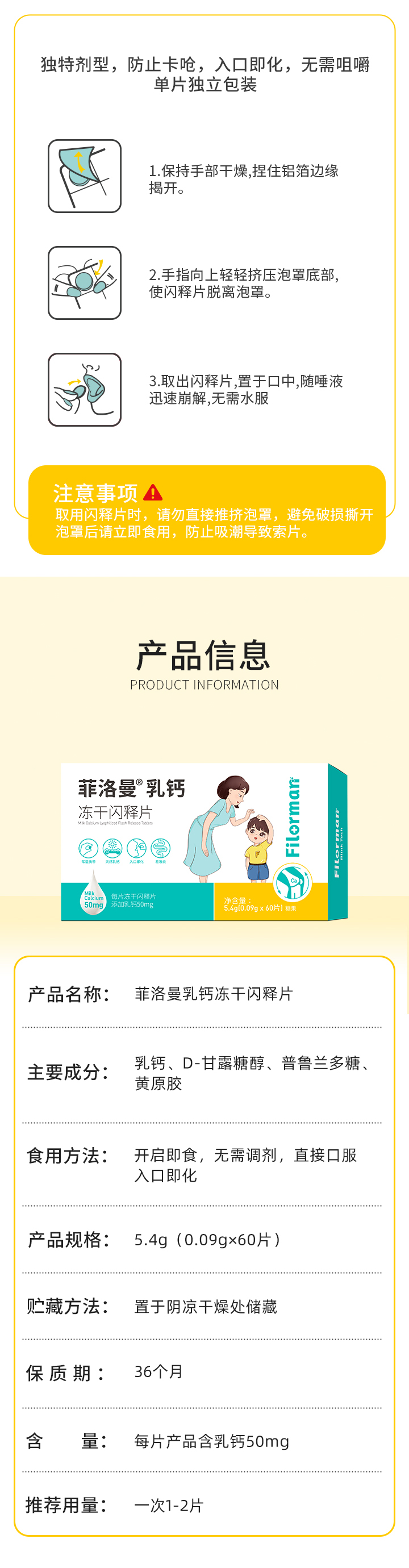 菲洛曼乳钙冻干闪释片糖果60片