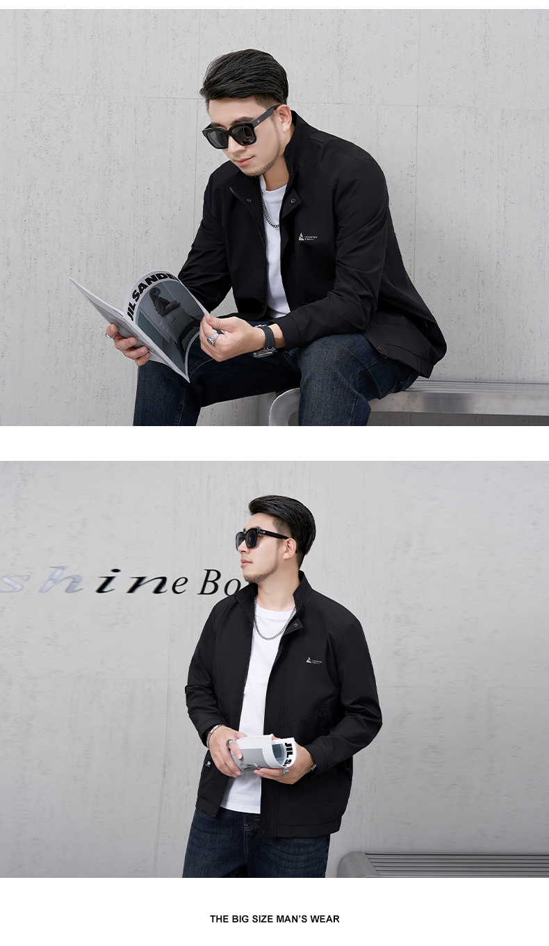 【新款DMH】大依优型大码立领夹克外套男宽松加肥加大码上衣夹克运动潮流