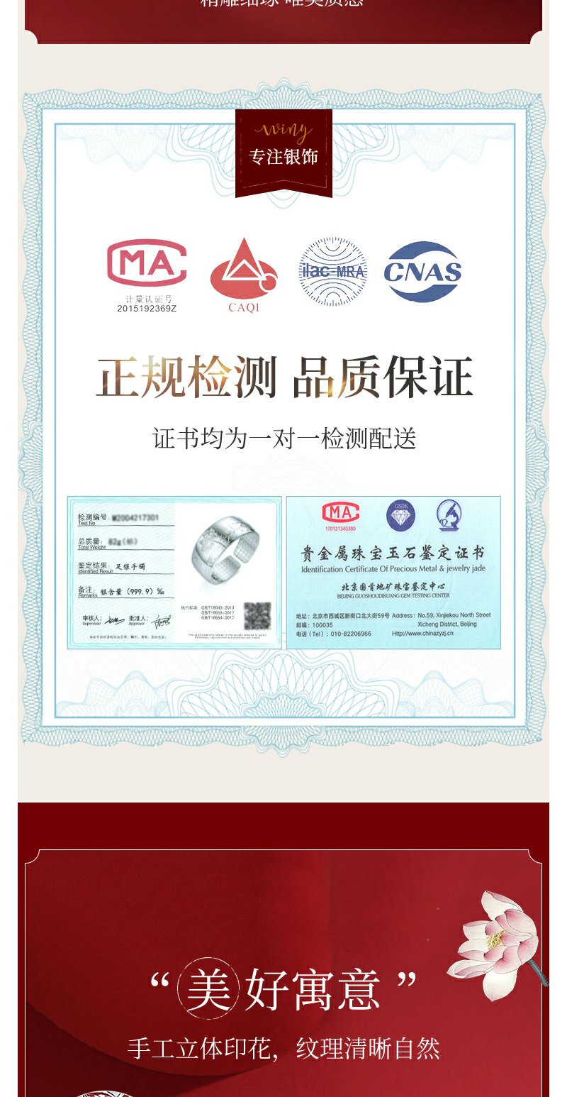 Winy9999足银龙凤心经手镯送女友闺蜜节日生日礼物