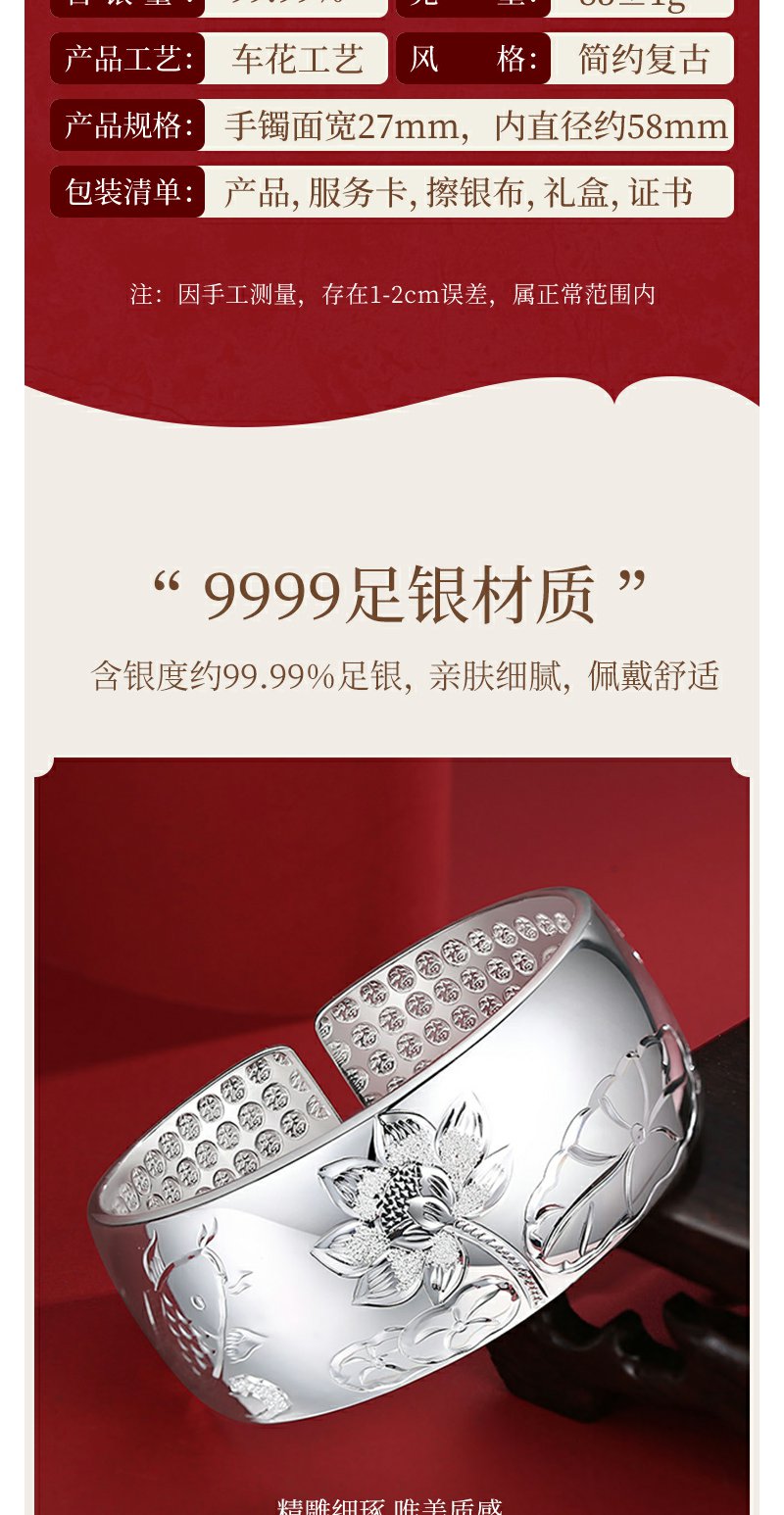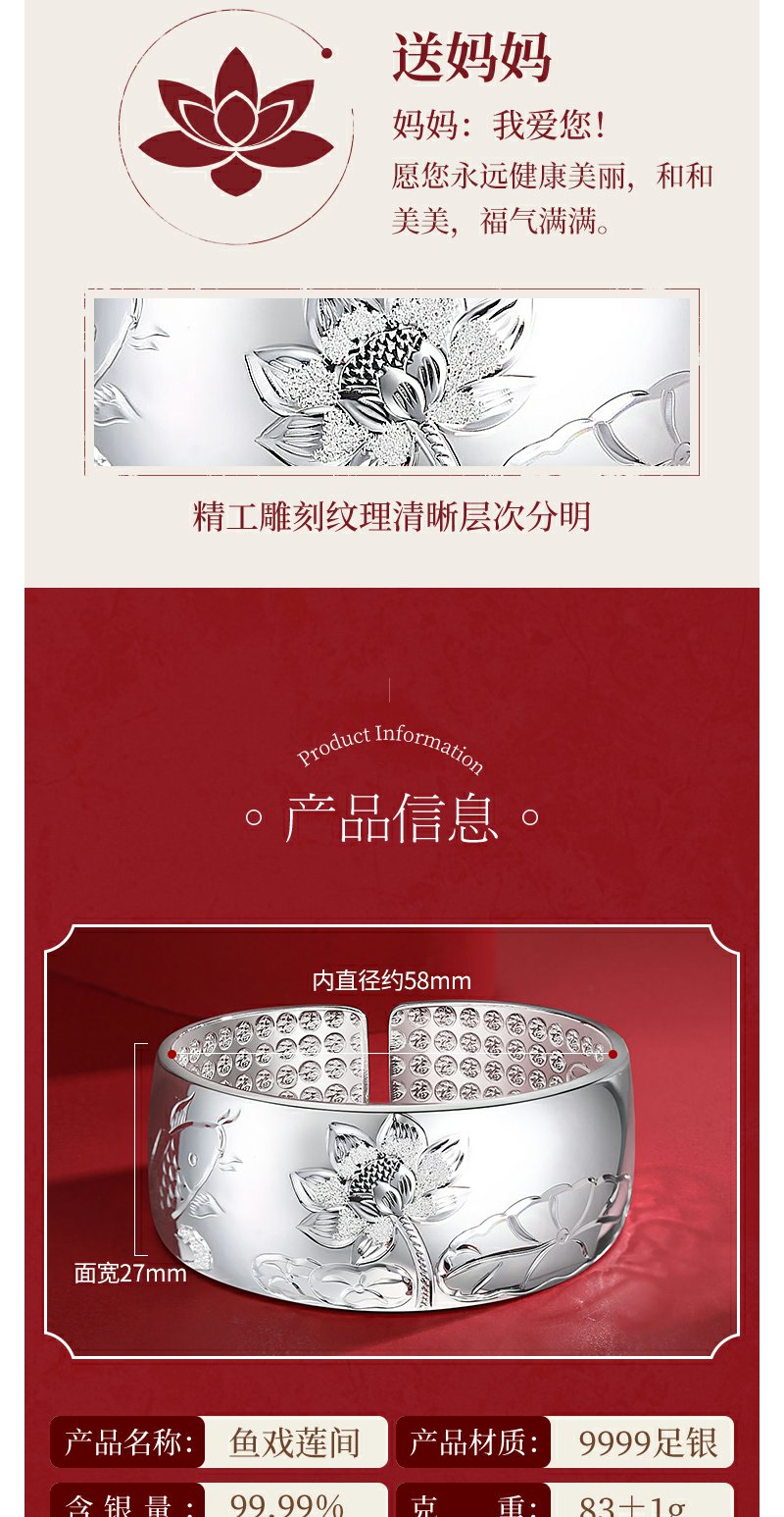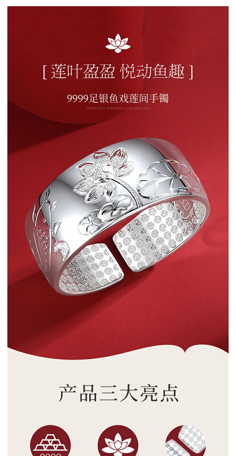 Winy9999足银鱼戏莲间手镯送女友闺蜜节日生日礼物