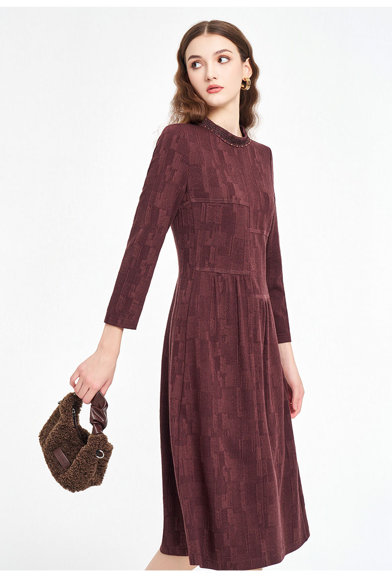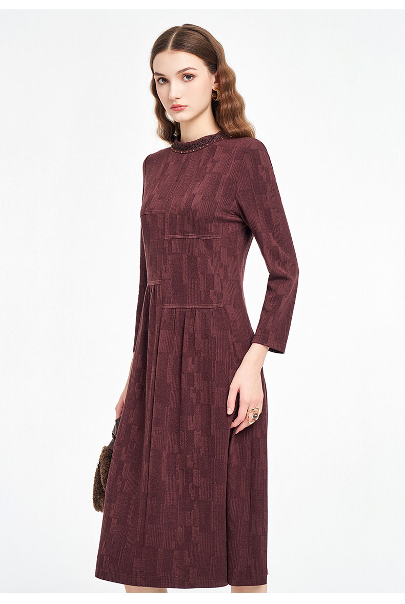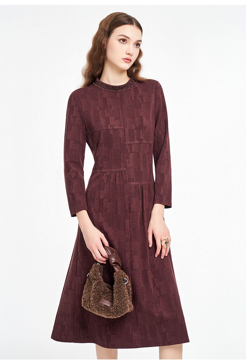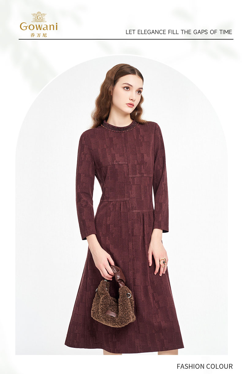 乔万尼2025秋新品美学设计复古小立领A型收腰连衣裙ED3E296
