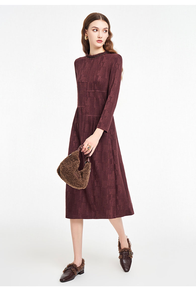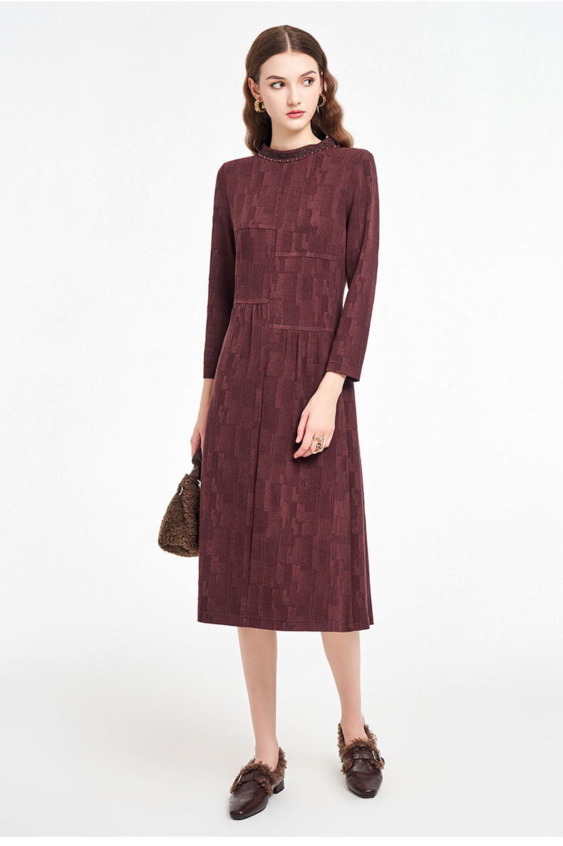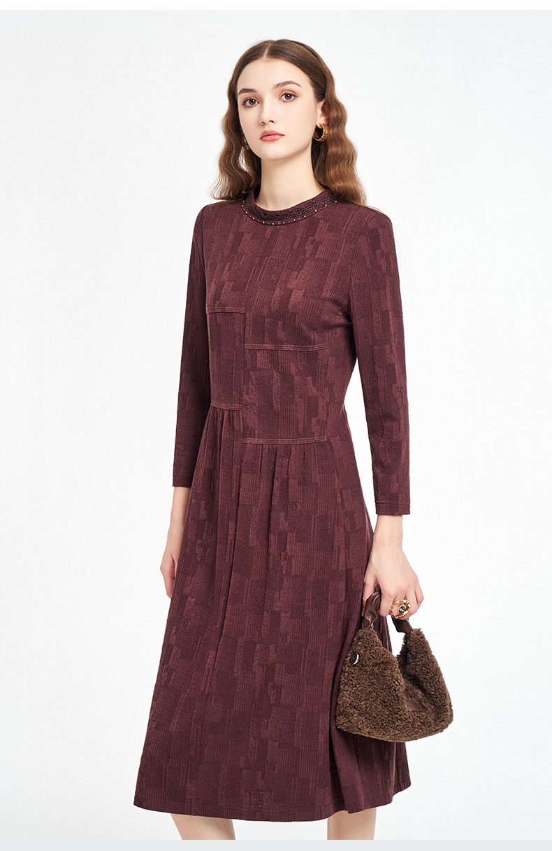 乔万尼2025秋新品美学设计复古小立领A型收腰连衣裙ED3E296