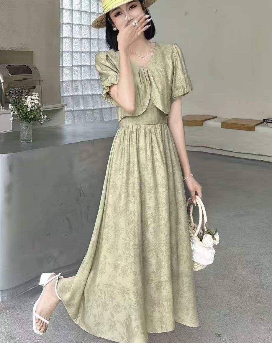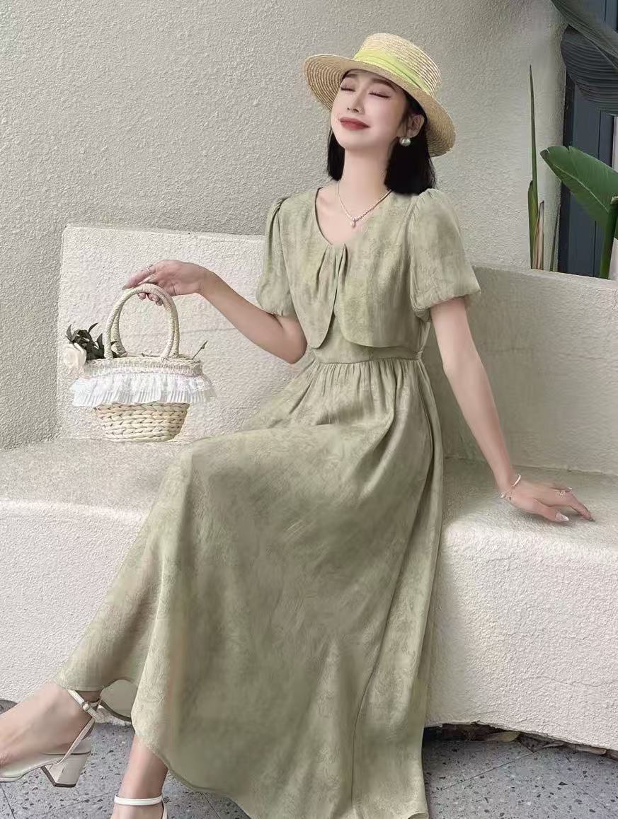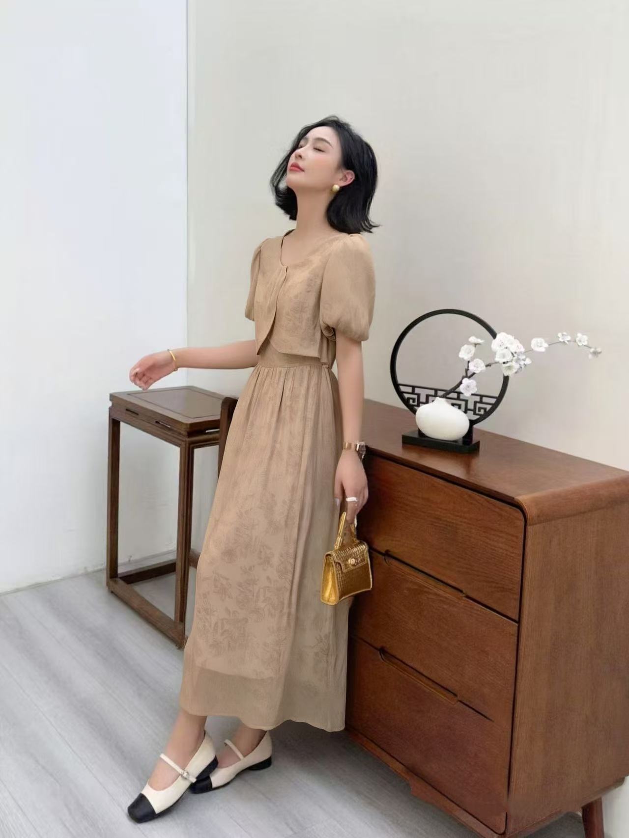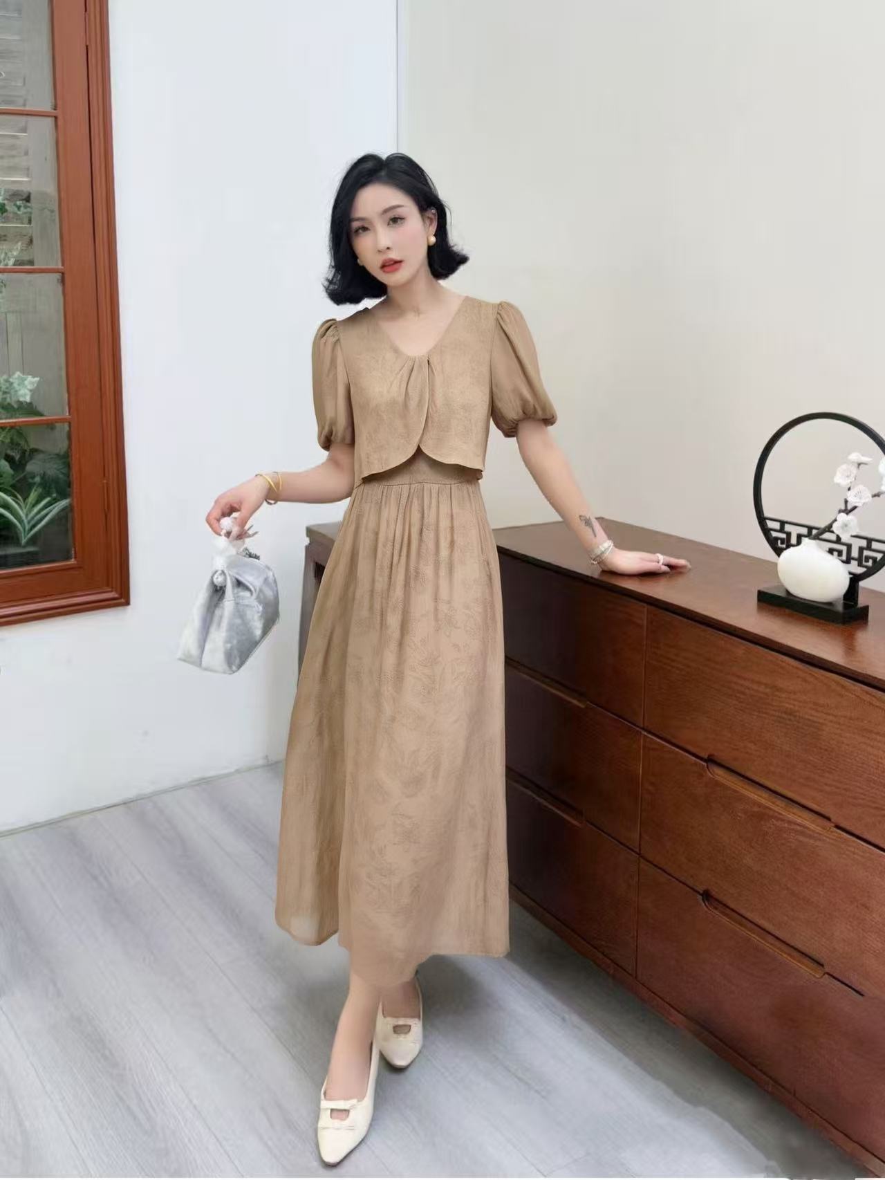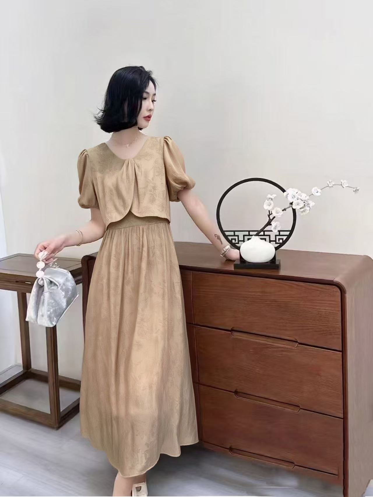 【必入推荐】 吊牌价1688元【MYBL】8631假两件暗纹天丝收腰显瘦连衣裙-喜出