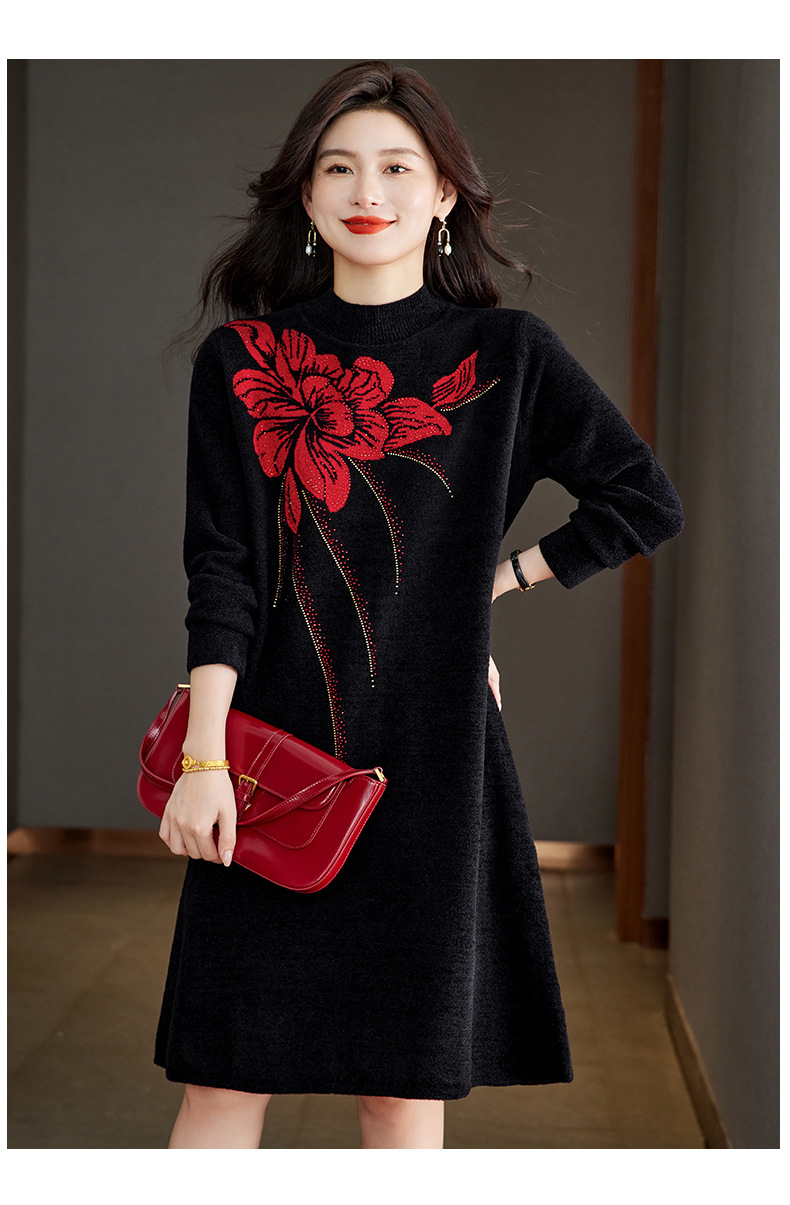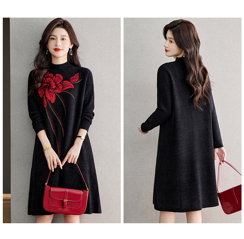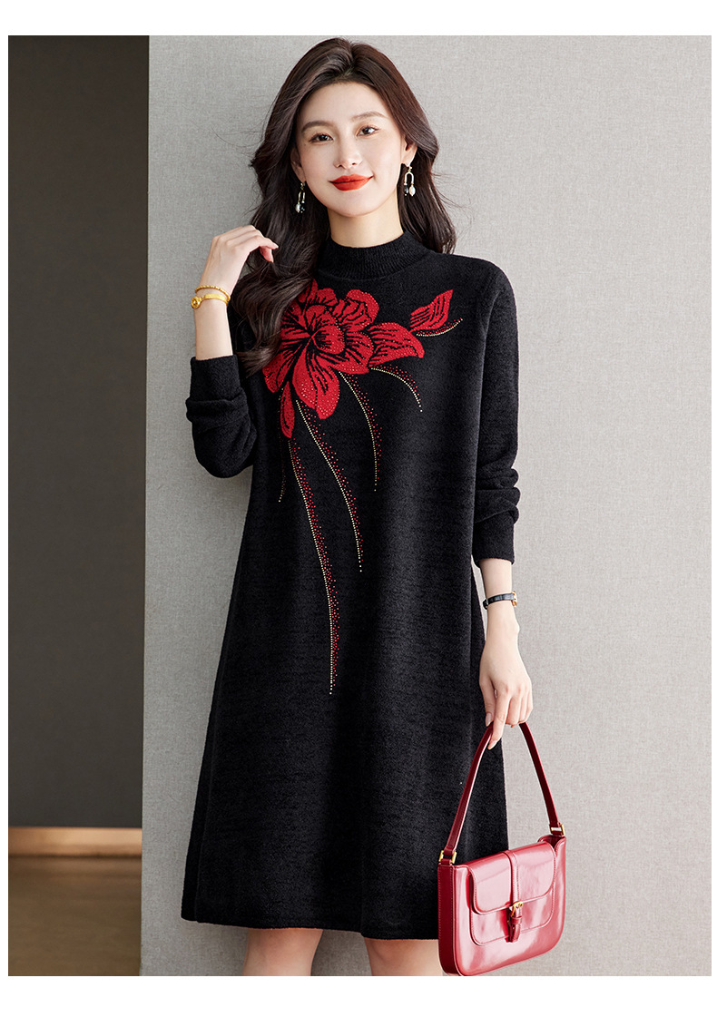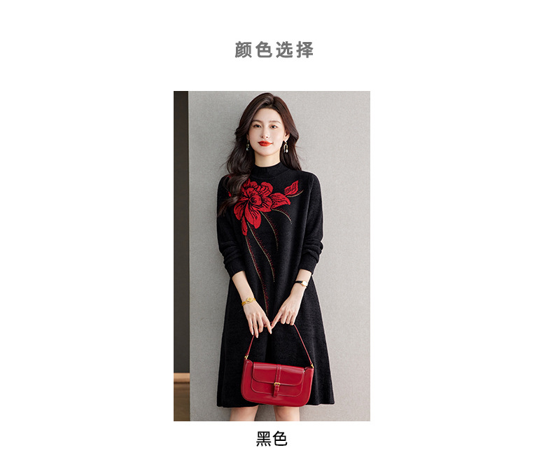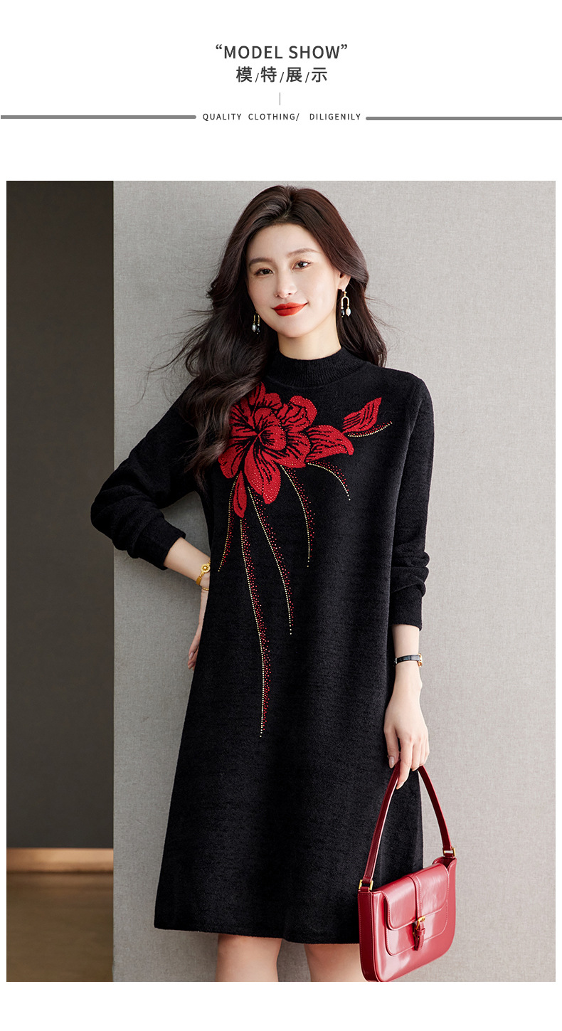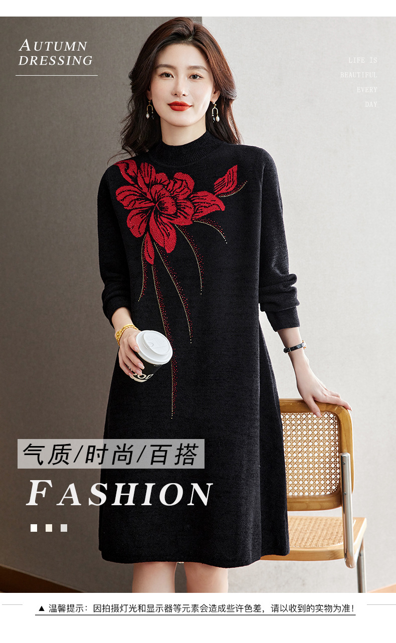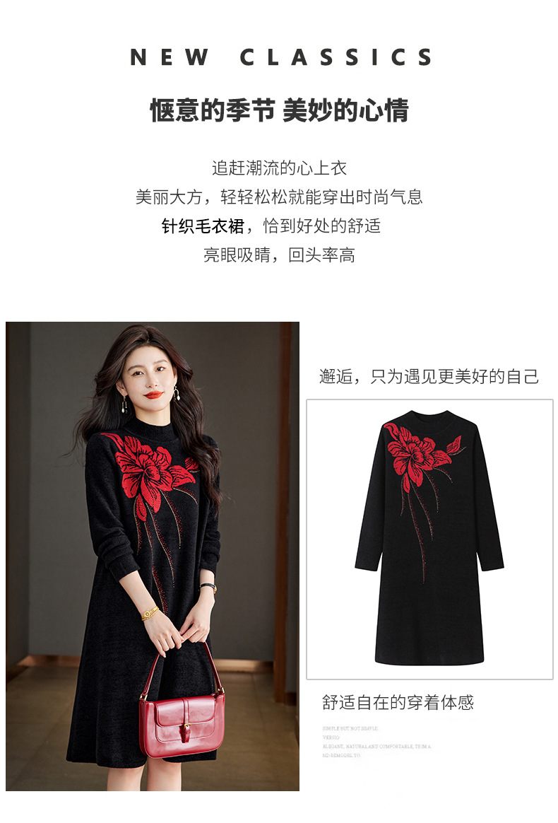 丁摩 气质连衣裙秋冬印花毛衣裙2800