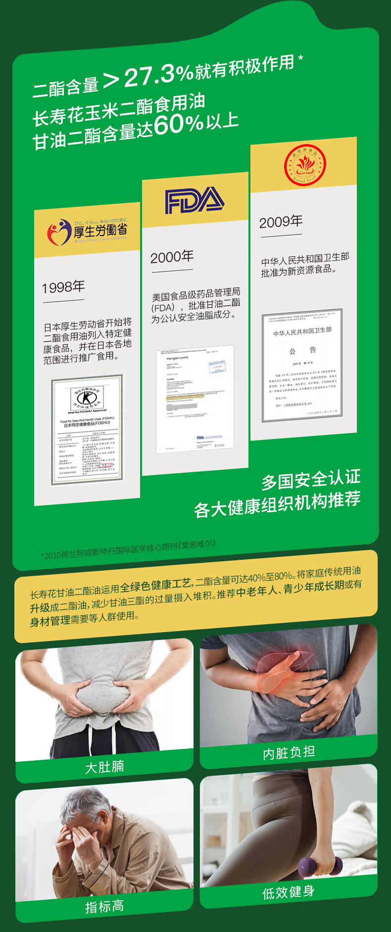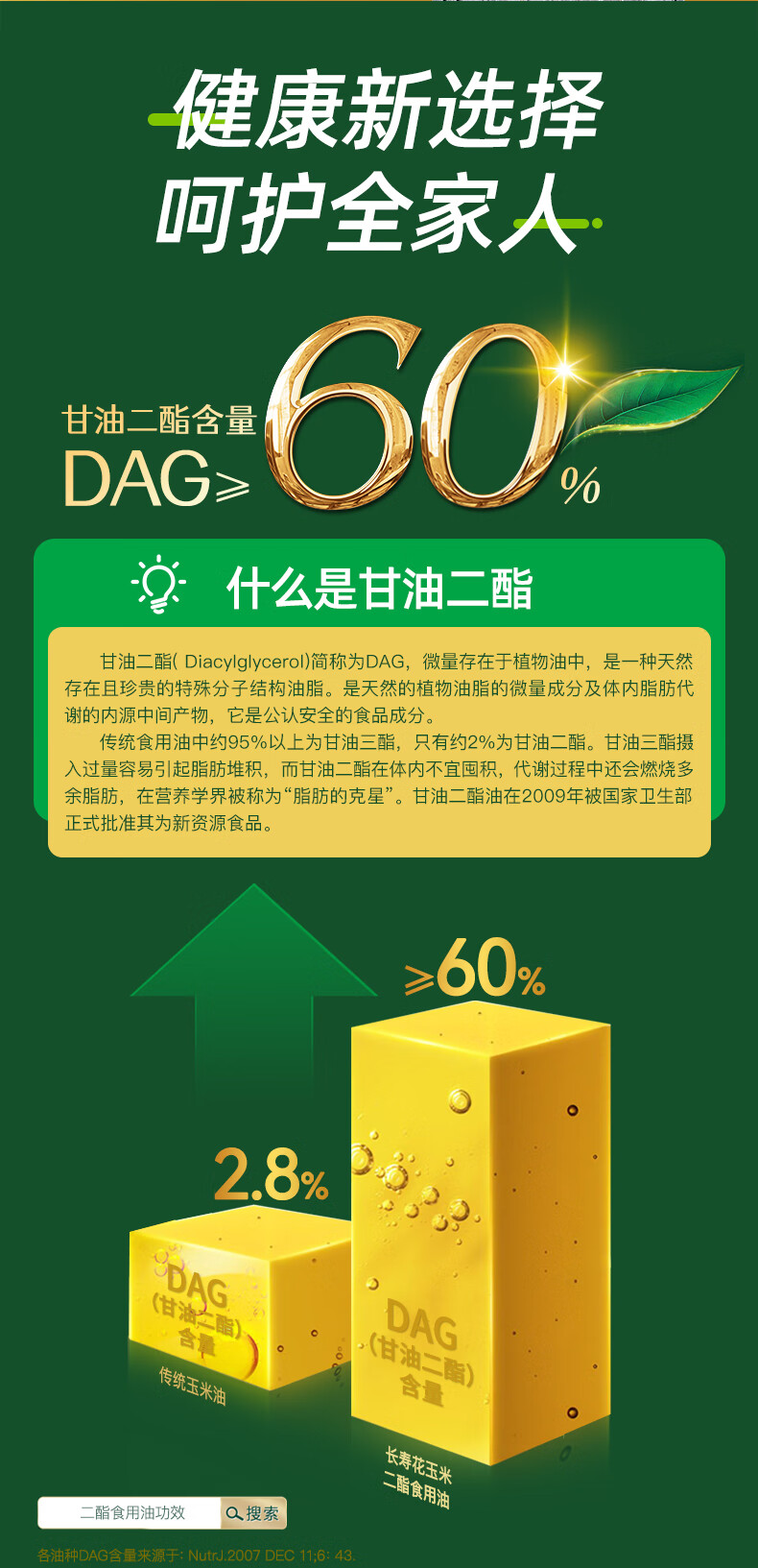 长寿花【超值礼盒装】甘油二酯食用油60%DAG含量 玉米 二酯油礼盒装 500mL*2瓶