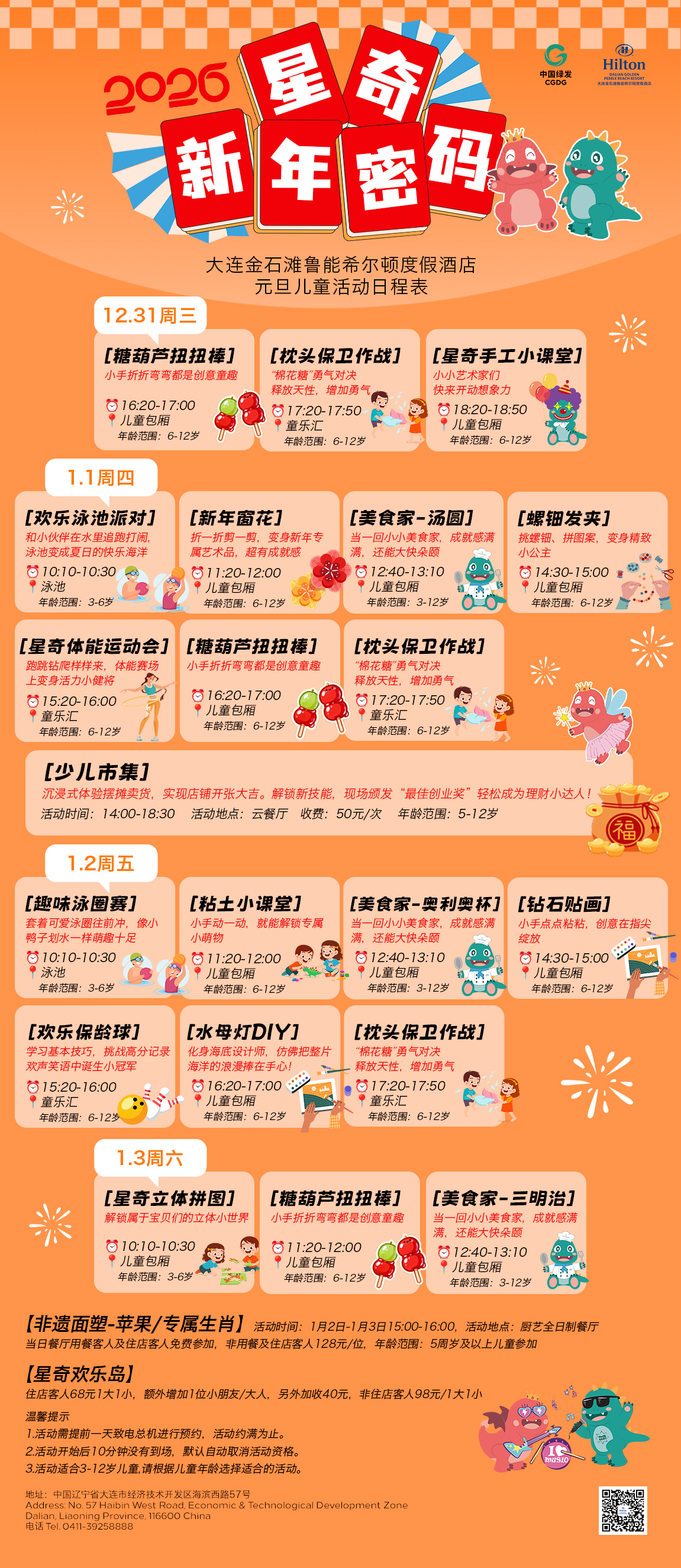 元旦跨年击穿底价<金石滩鲁能希尔顿酒店+双早+双人鲁能温泉>限量抢!暖汤海景跨年仪式感拉满!拼手速解锁遛娃新玩法!