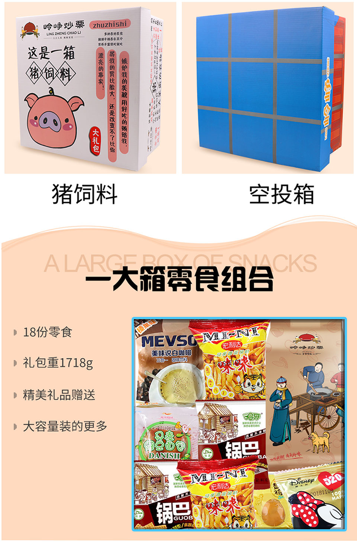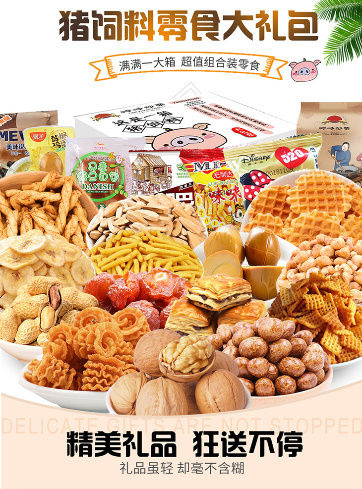 【限时5折】抖音网红猪饲料零食大礼包组合 一整箱超大混装小吃(送小熊、玫瑰)