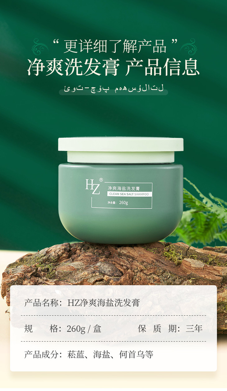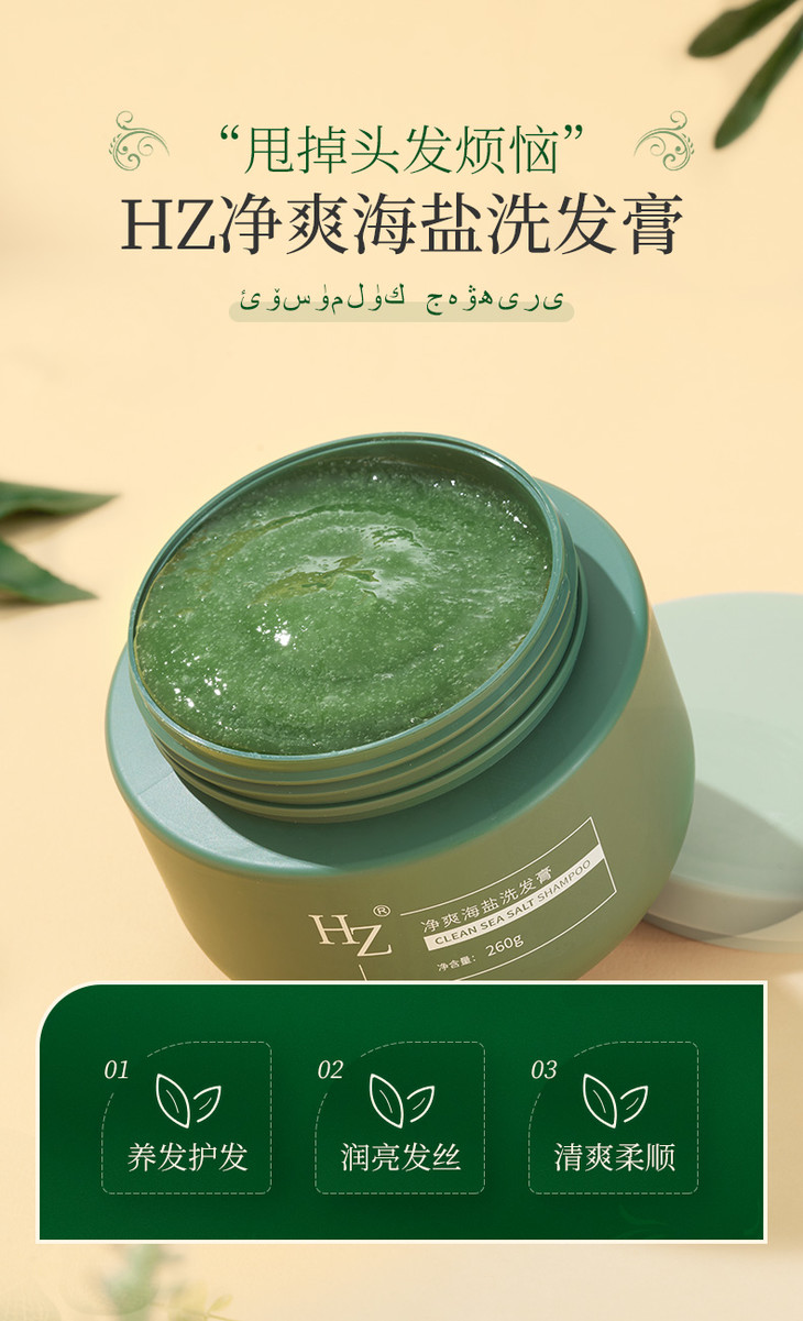 【买2送1 买3送2】HZ净爽海盐洗发膏 乌斯玛草精粹 减少掉发白发养发护发260g/瓶