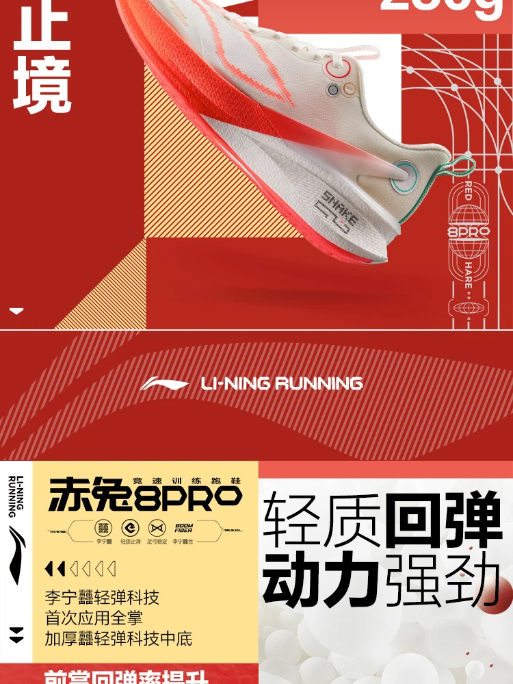 李宁赤兔8 PRO 新年配色男子反光䨻丝轻量高回弹竞速训练跑鞋ARPV003