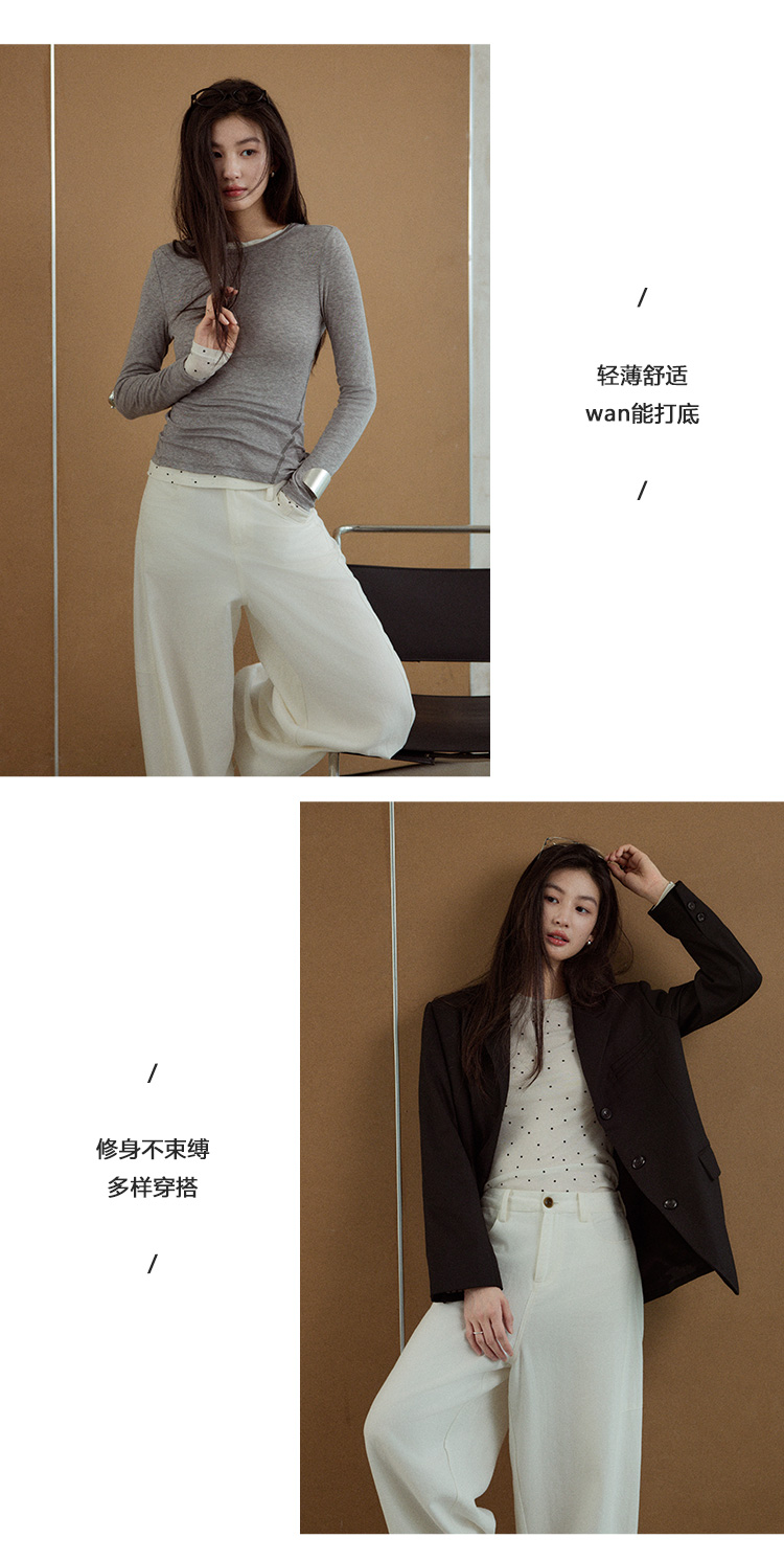 Even Vintage| 天丝羊毛混纺 叠穿真两件修身针织内搭打底衫上衣