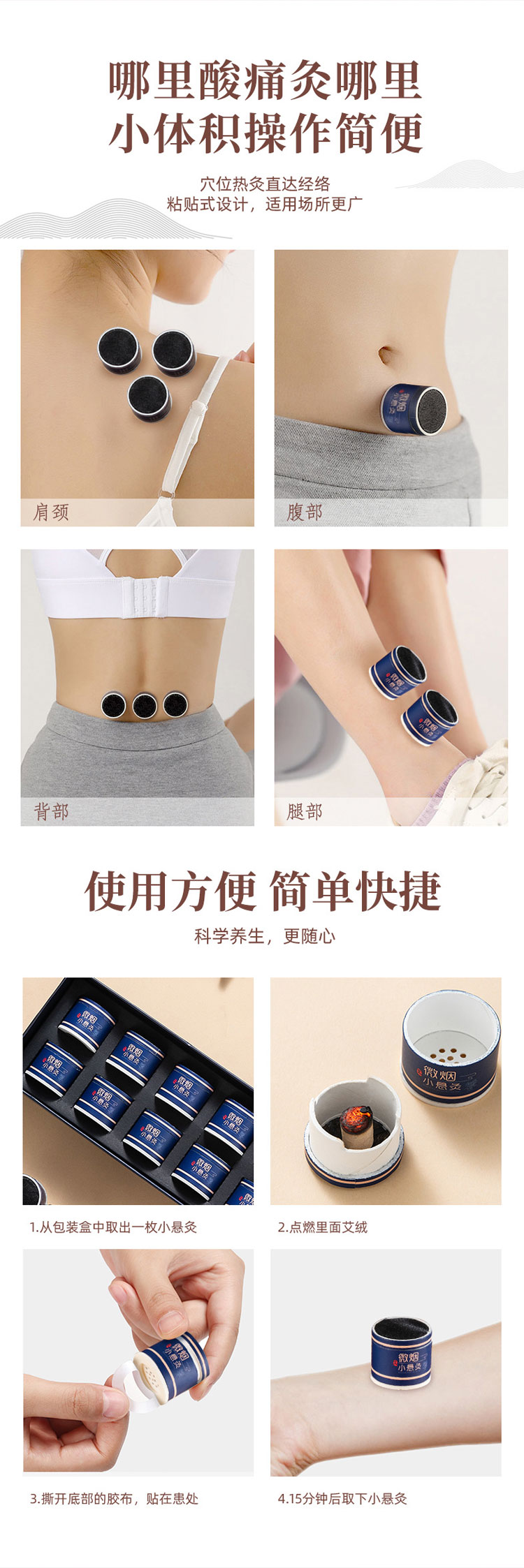 【想灸哪里灸哪里】仁和微烟小悬灸艾灸盒随身灸家用礼盒艾条艾柱粒小筒灸