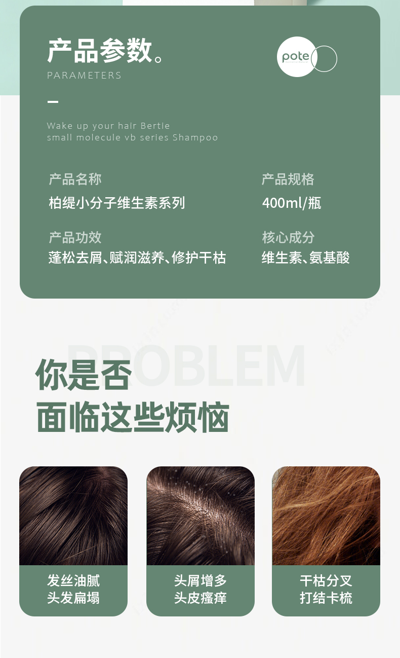 【唤醒秀发 买1送1】柏缇小分子维生素蓬松去屑洗发露去屑止痒清洁油脂蓬松去屑修护干枯