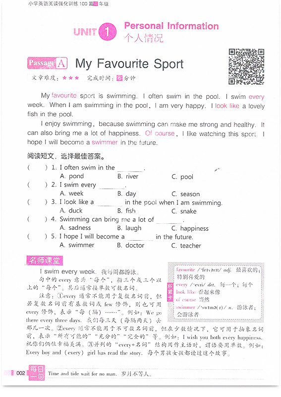 小学英语阅读强化训练100篇4年级全一册新版】每日十分钟有声伴读