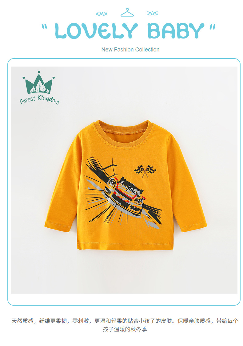 【纯棉打底,柔软舒适】男童长袖T恤 童装新品 儿童男宝宝上衣 休闲纯棉打底衫 时尚休闲的款式设计 让宝宝更加帅气-QQ
