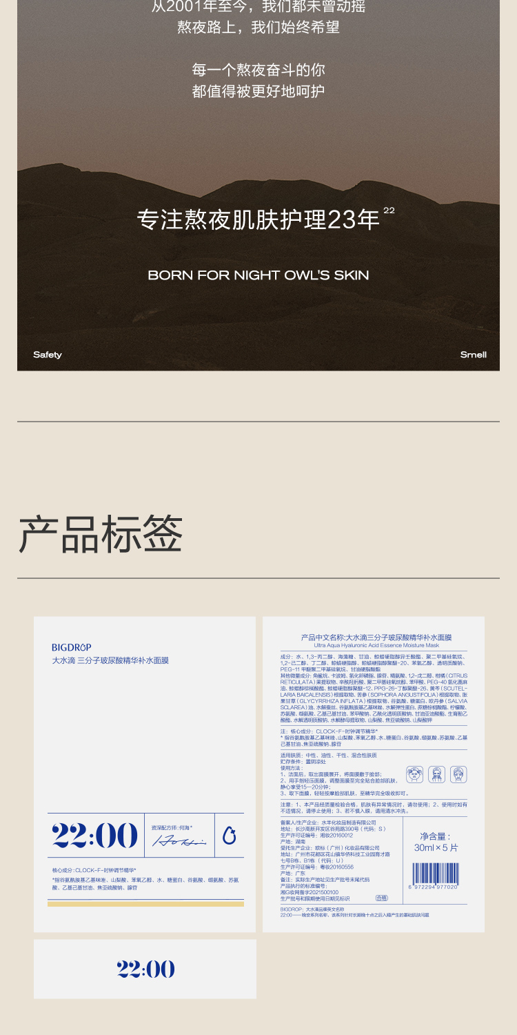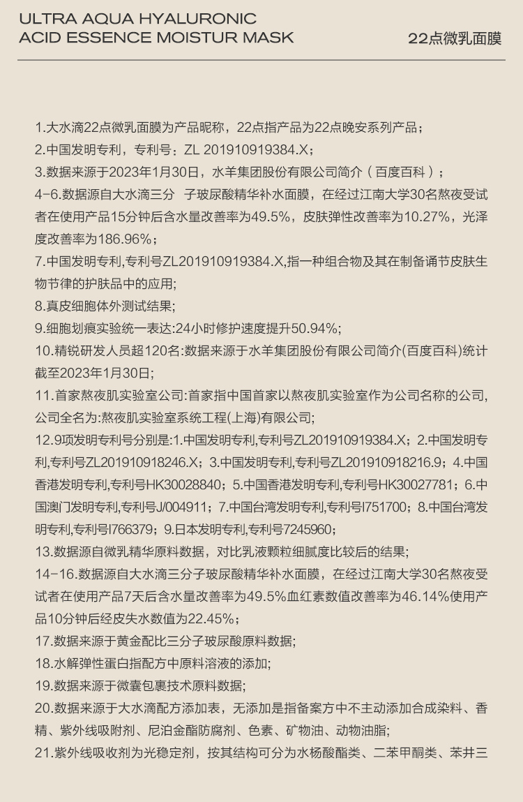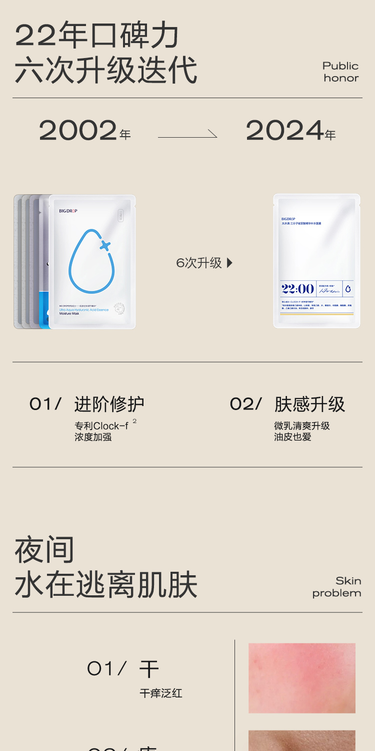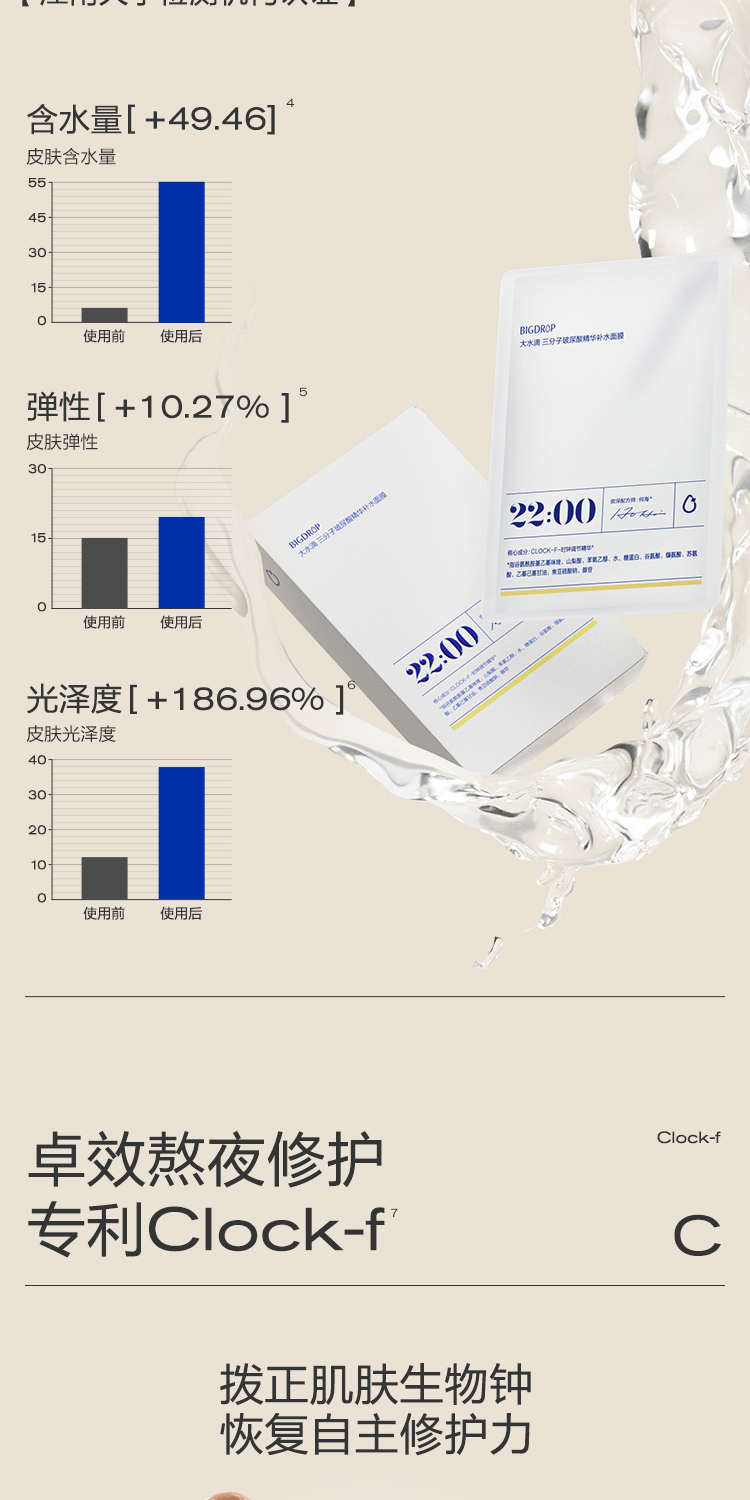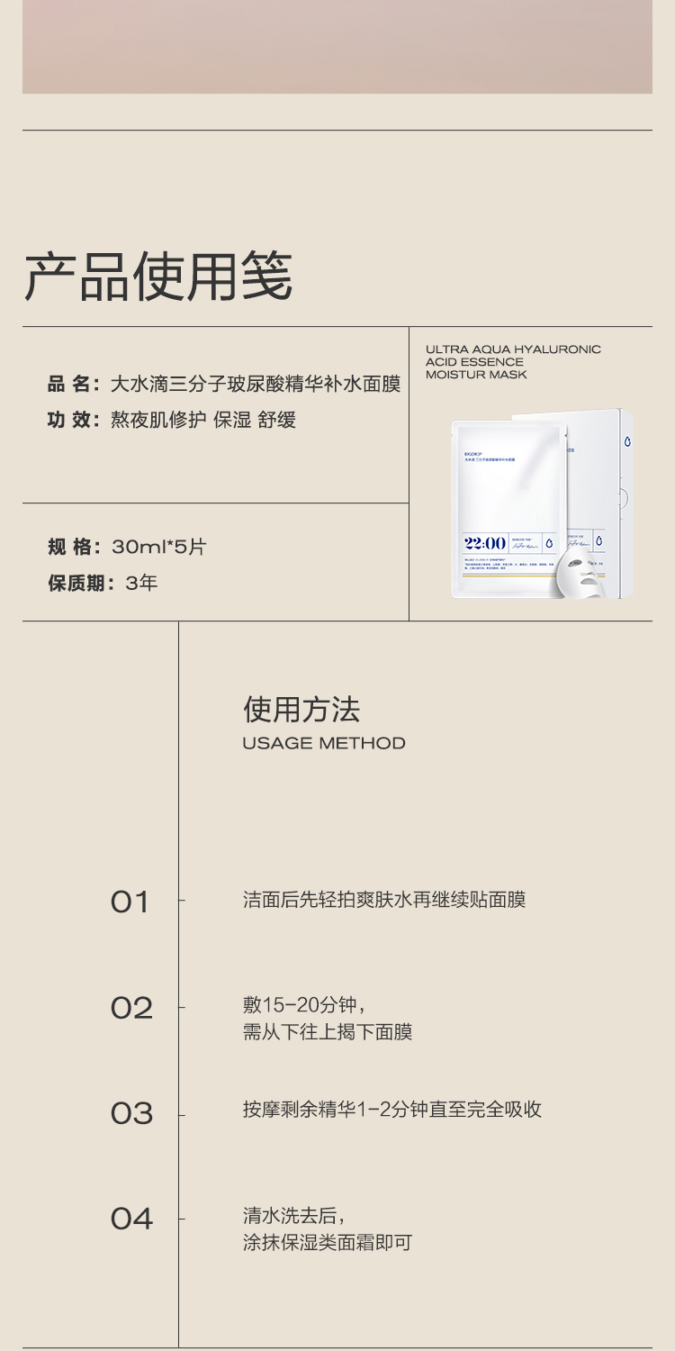【一般贸易】大水滴三分子玻尿酸精华补水面膜30ml*10片(散装)