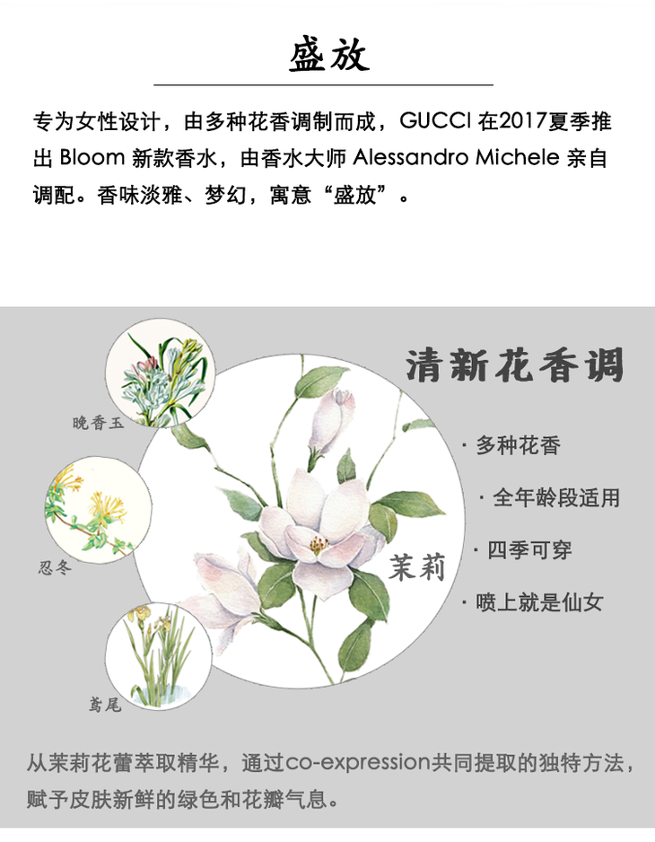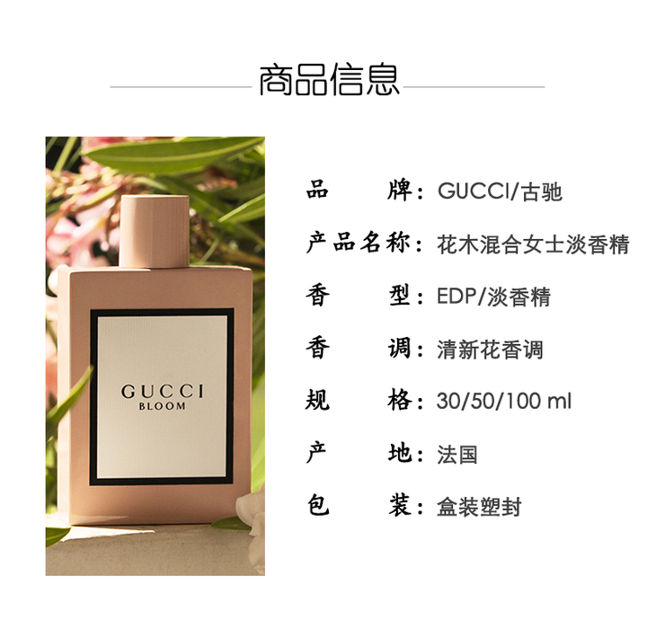2017秋季 Gucci bloom古琦古驰新款绽放女士香水花木混合EDP50ml