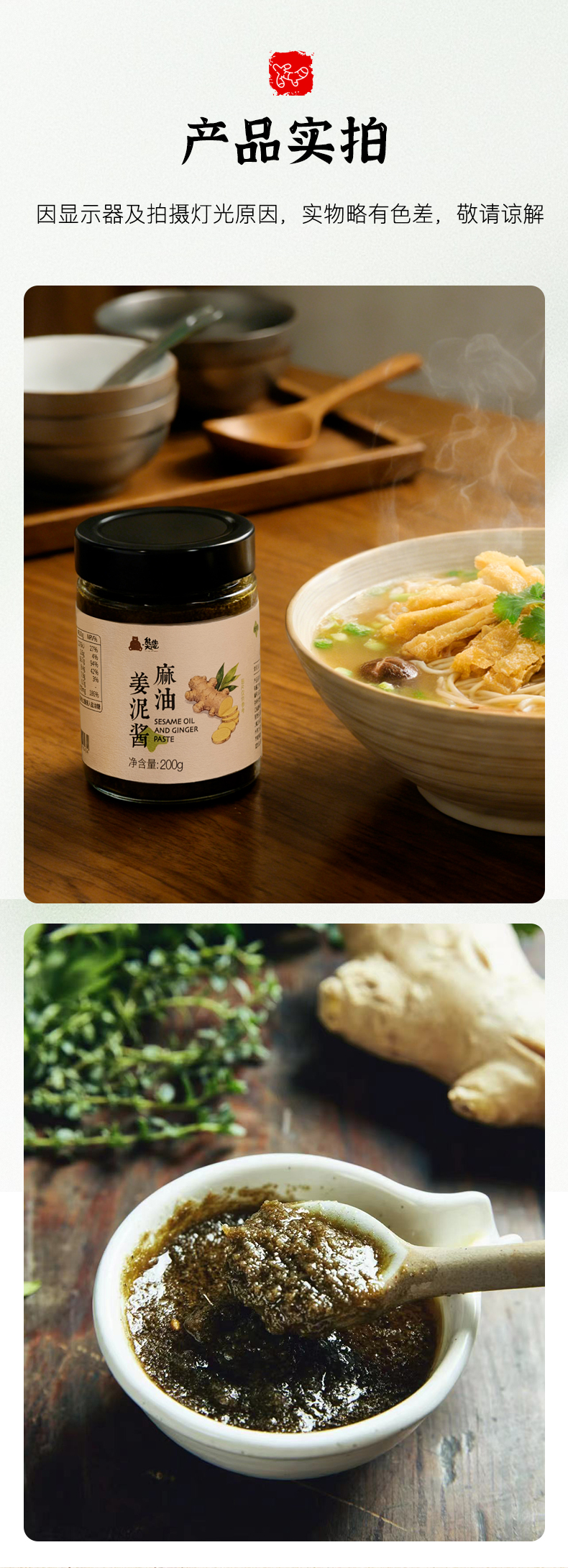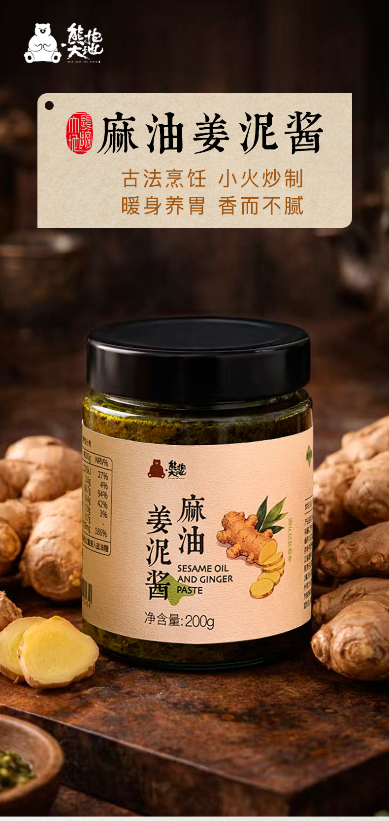 熊抱大地 麻油姜泥酱 | 200g/瓶 有机老姜 小火炒制 煮面拌饭佐餐调味【自营】