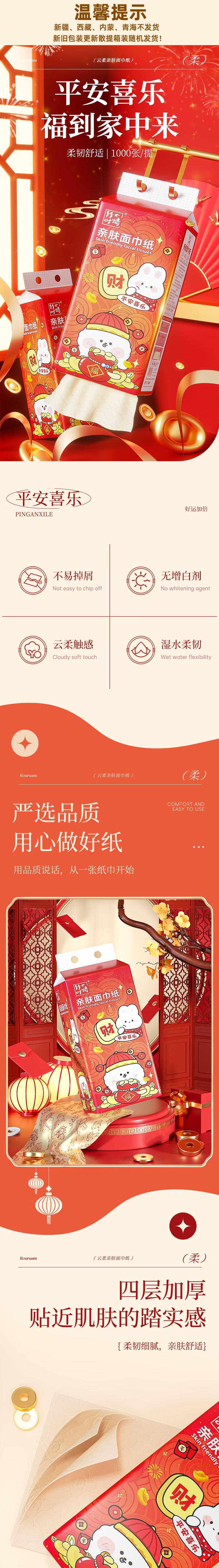 蓝漂 竹叶情本色挂式抽纸4层1000张*3提 LP0YC003T