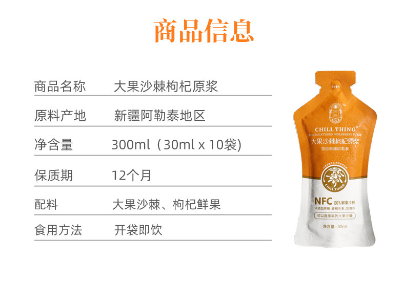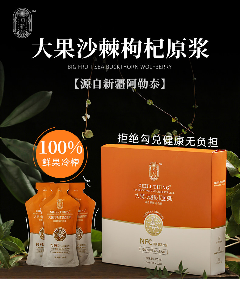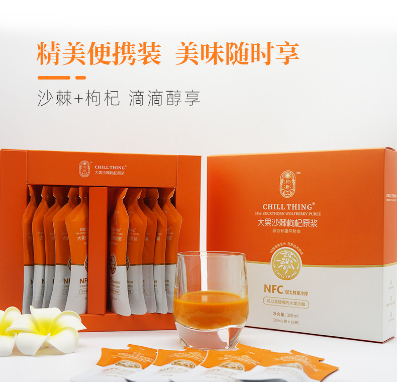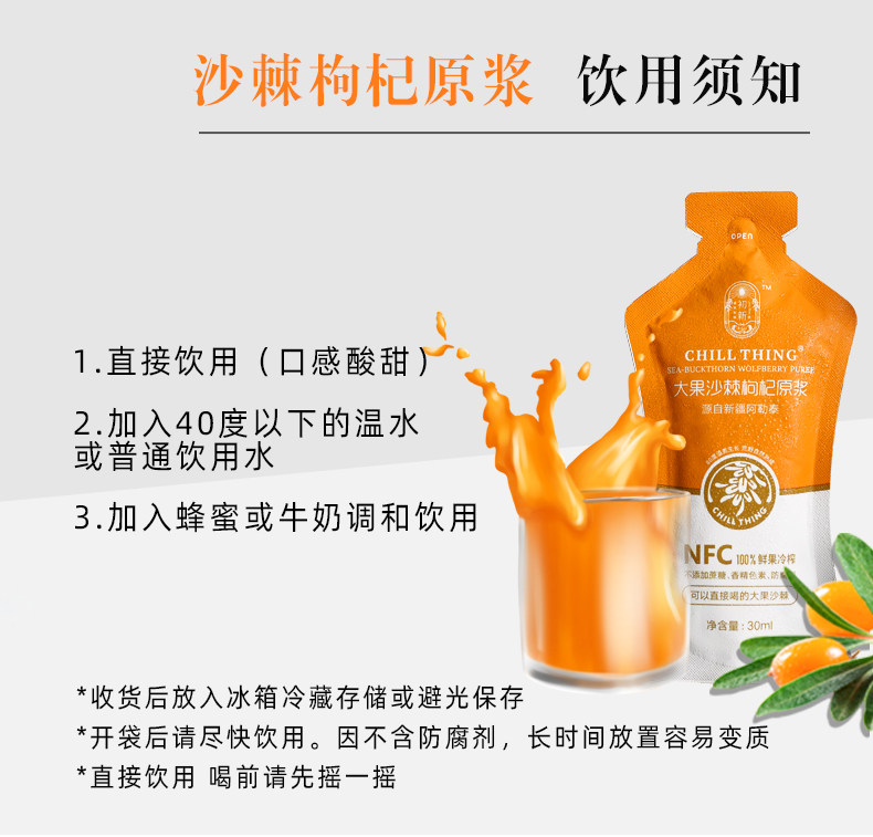 新疆阿勒泰 康元大果沙棘枸杞原浆30ml*10袋