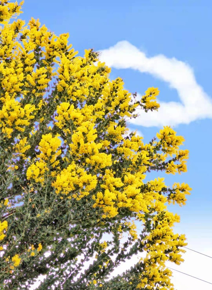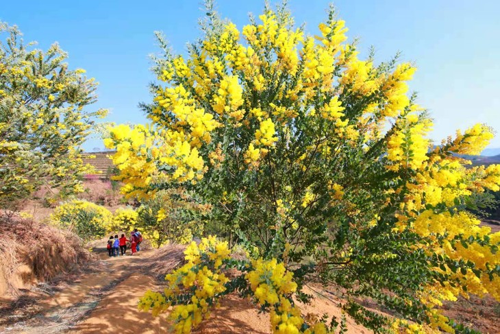 樱花峪旁茶园,金合欢花已开放,一大片金黄色,在阳光照耀下,显得格外好看。