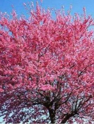 花色白色至深粉红色,开花较迟,由于有八重花瓣,称之为八重樱。寒绯樱花色是鲜红,不但适合温暖地区,也非常耐寒,1月中旬已盛开