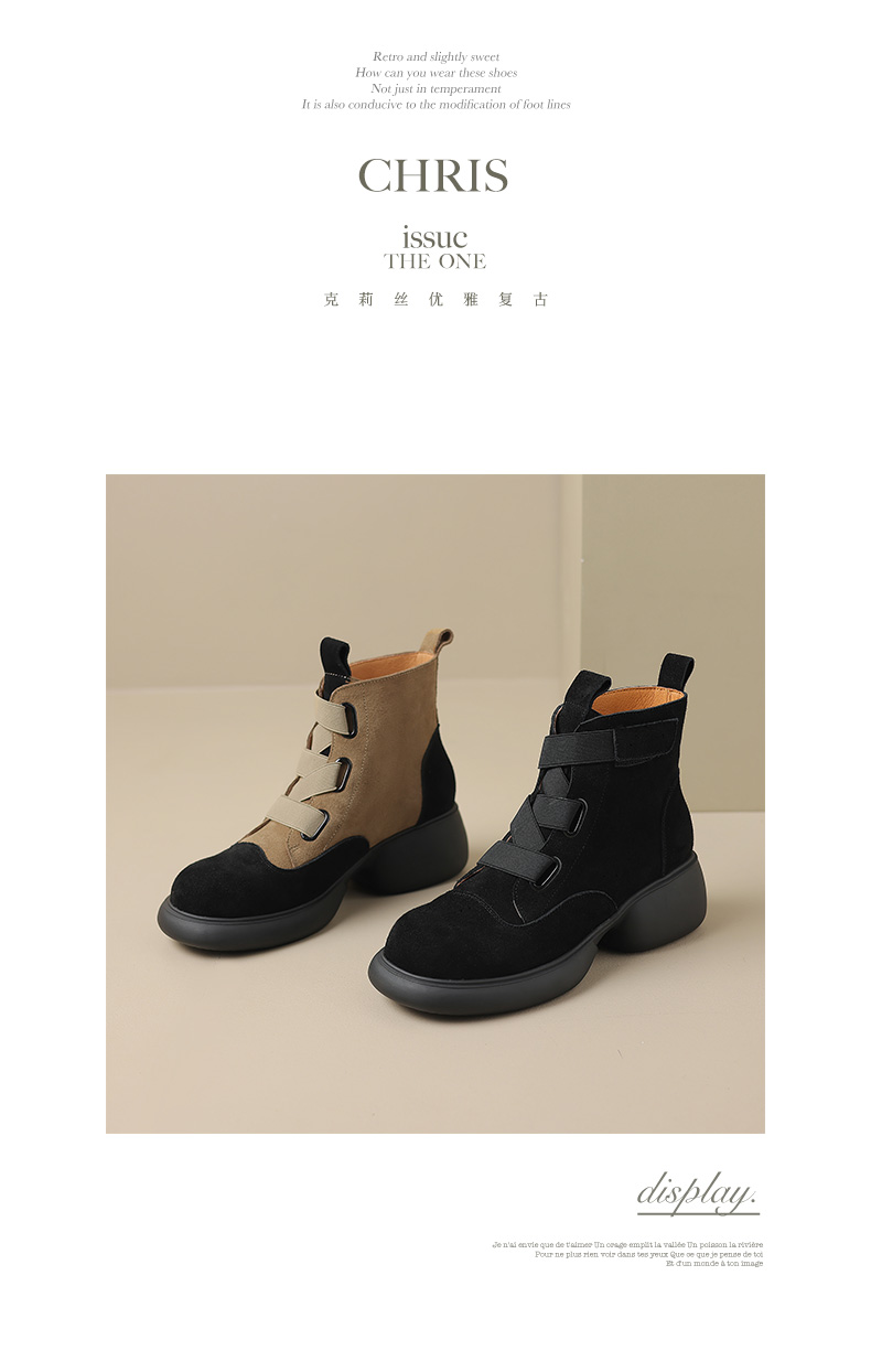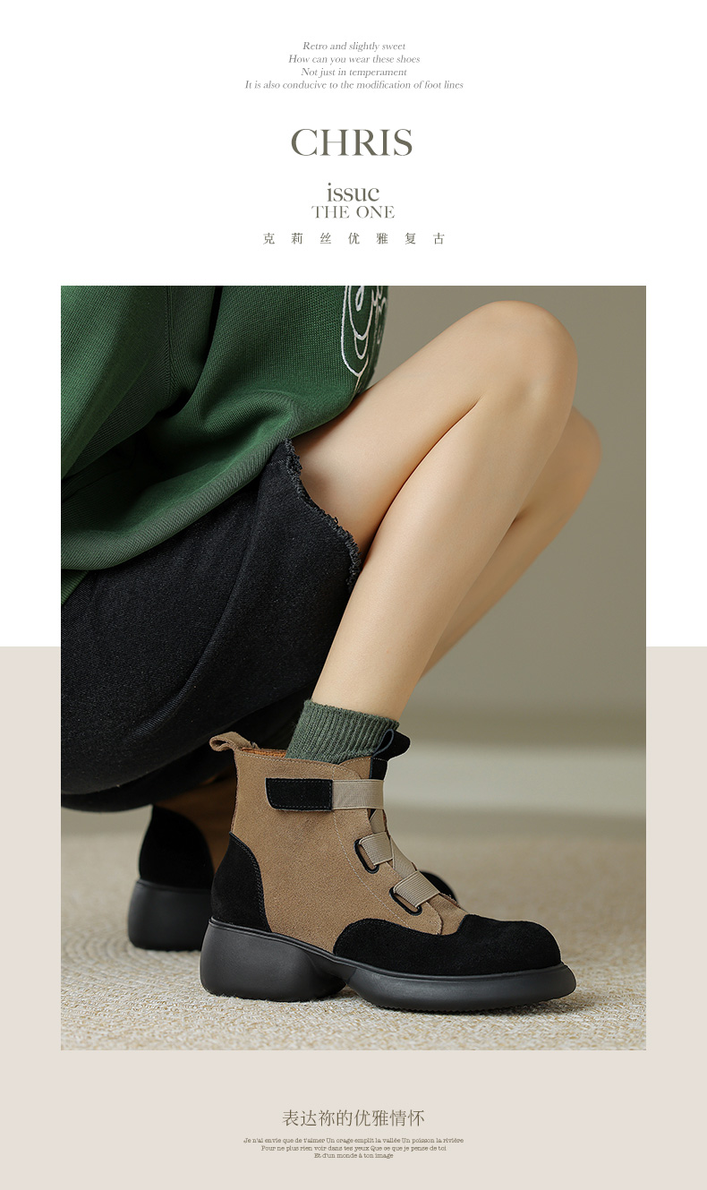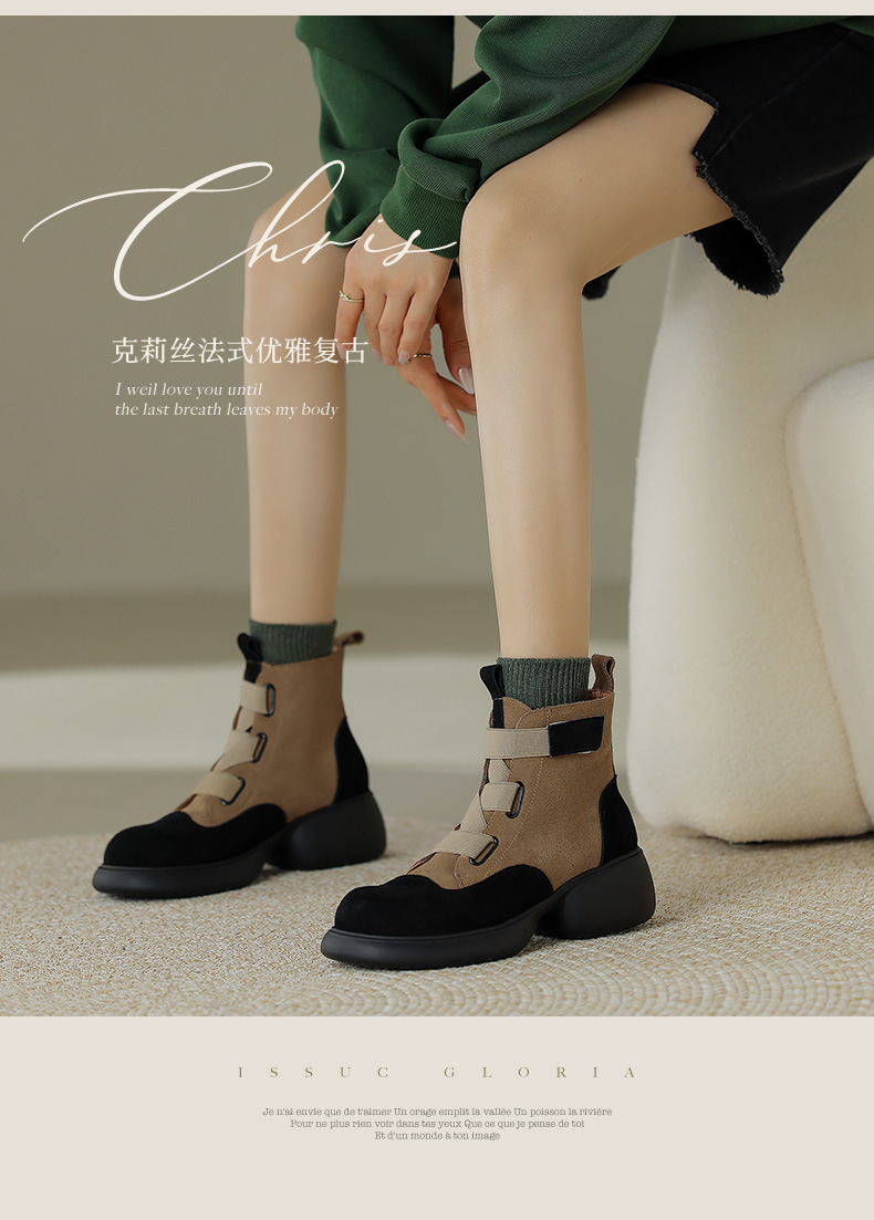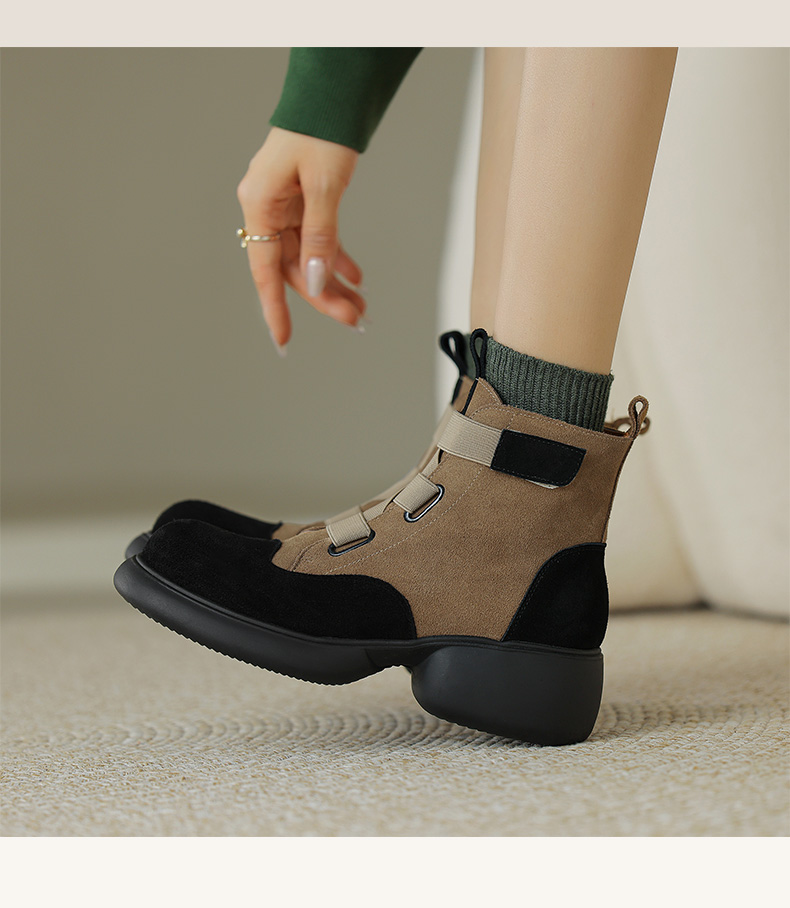 时尚减龄,个性拼色牛反绒厚底短靴KYD-KK7880
