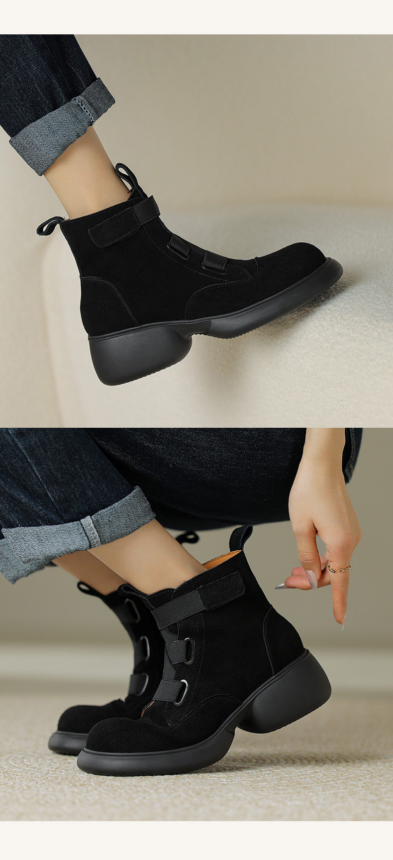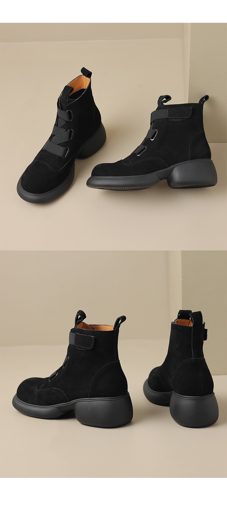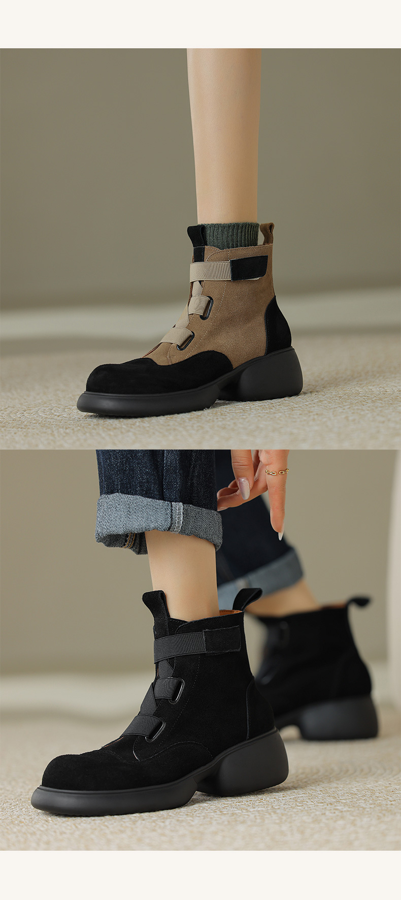 时尚减龄,个性拼色牛反绒厚底短靴KYD-KK7880